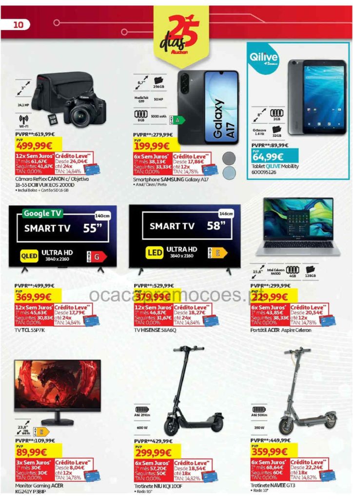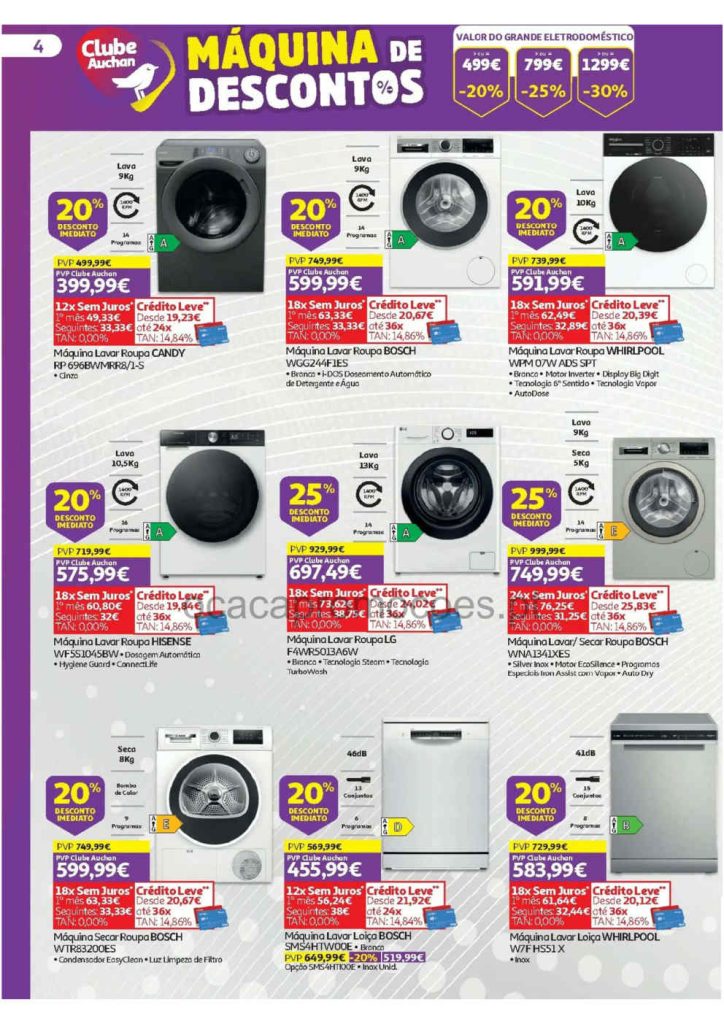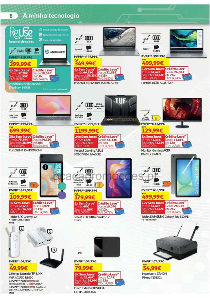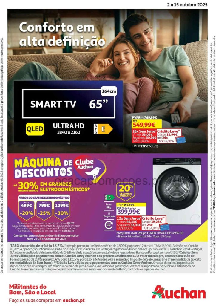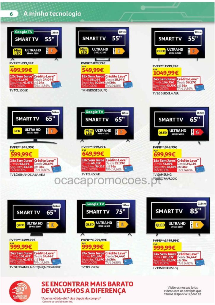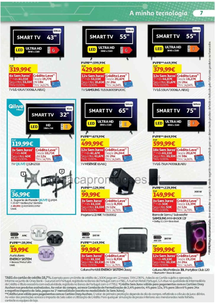 As promoções tecnologia a preços baixos com descontos diretos e em clube Auchan. Várias oportunidades leve 3 pague 2 assinalados. Artigos com stock limitado. Tudo para o seu lar, mobilidade, cozinha, comunicação e mais. Até 30% em grandes eletrodomésticos. Consultem os Folhetos. A Antevisão!