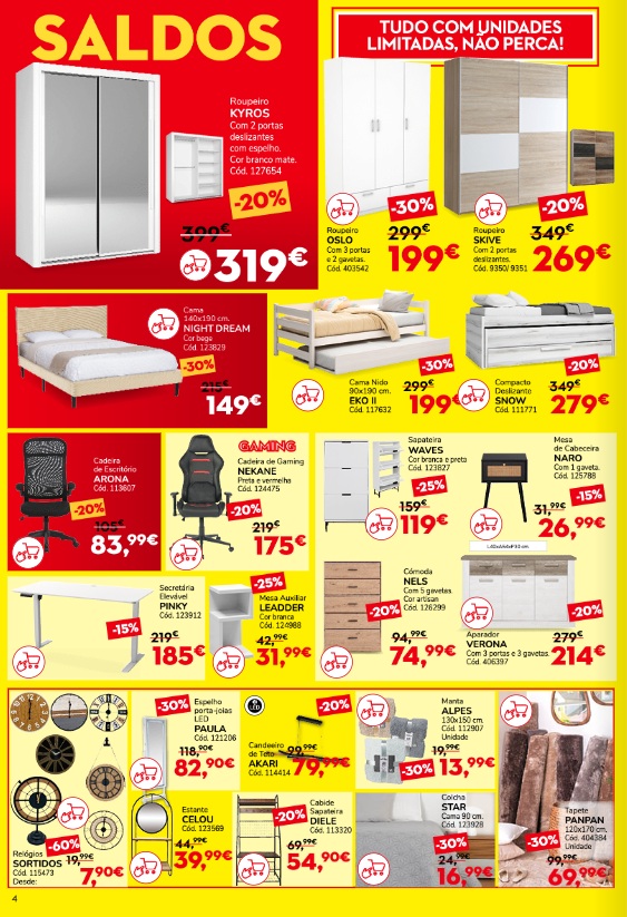 Novos Saldos em mobiliário, decoração, têxtil lar, eletrodomésticos, cozinha, quarto e mais para o lar. O Caça Promoções, atualizado permanentemente com todas noticias e novidades até 60% nas várias categorias. Comparem e façam a vossa lista. Inclui Regresso às aulas. Consultem os Folhetos. A Antevisão!