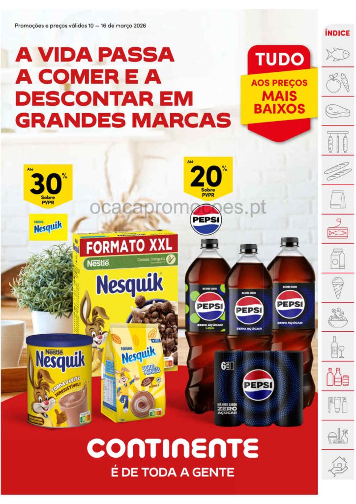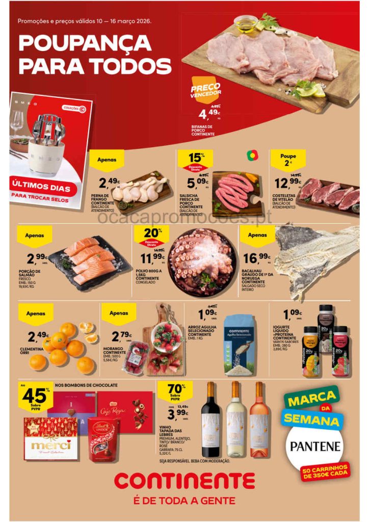 Poupança com as antevisões promoções alimentar e bazar no Continente. Folheto 10 a 16 de março,