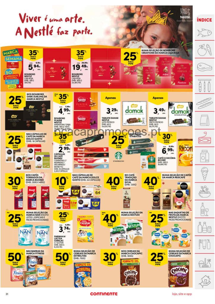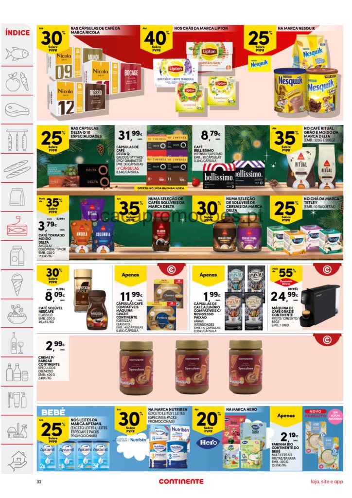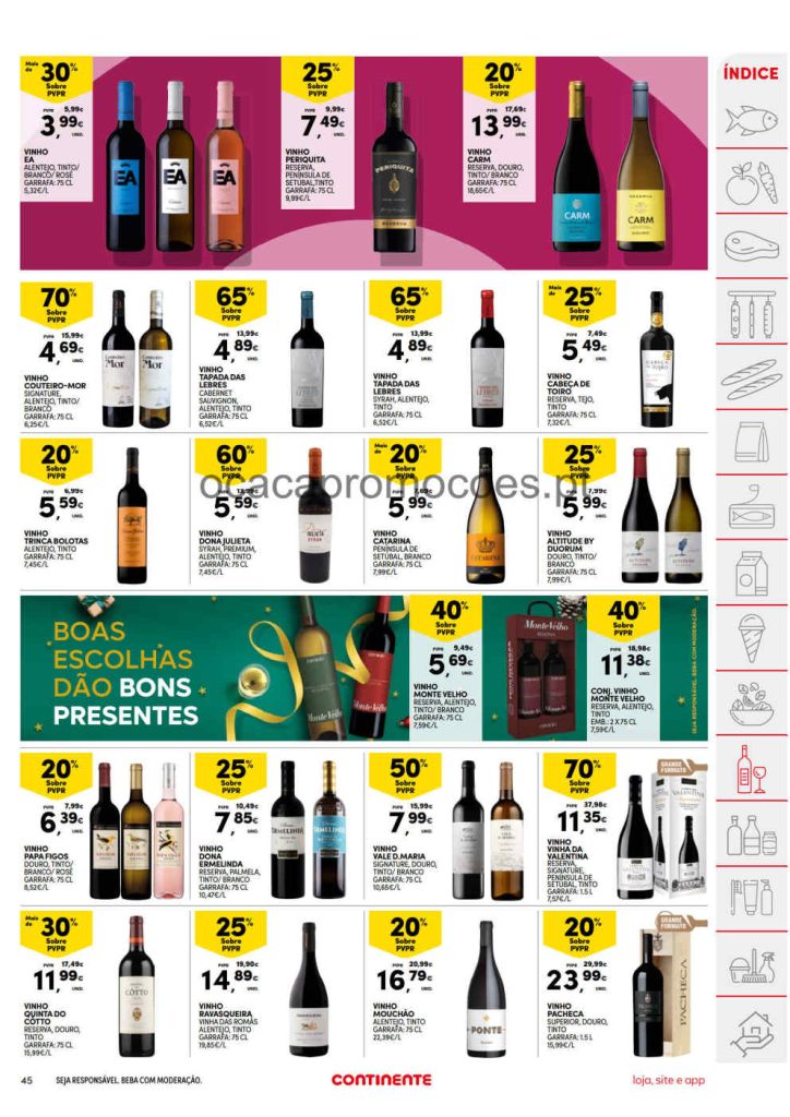 As descidas estão espalhadas por grande parte das categorias principais. Folheto Continente 16 a 26 de dezembro,