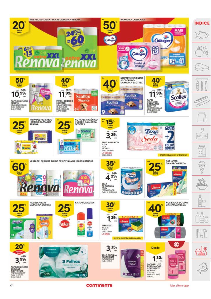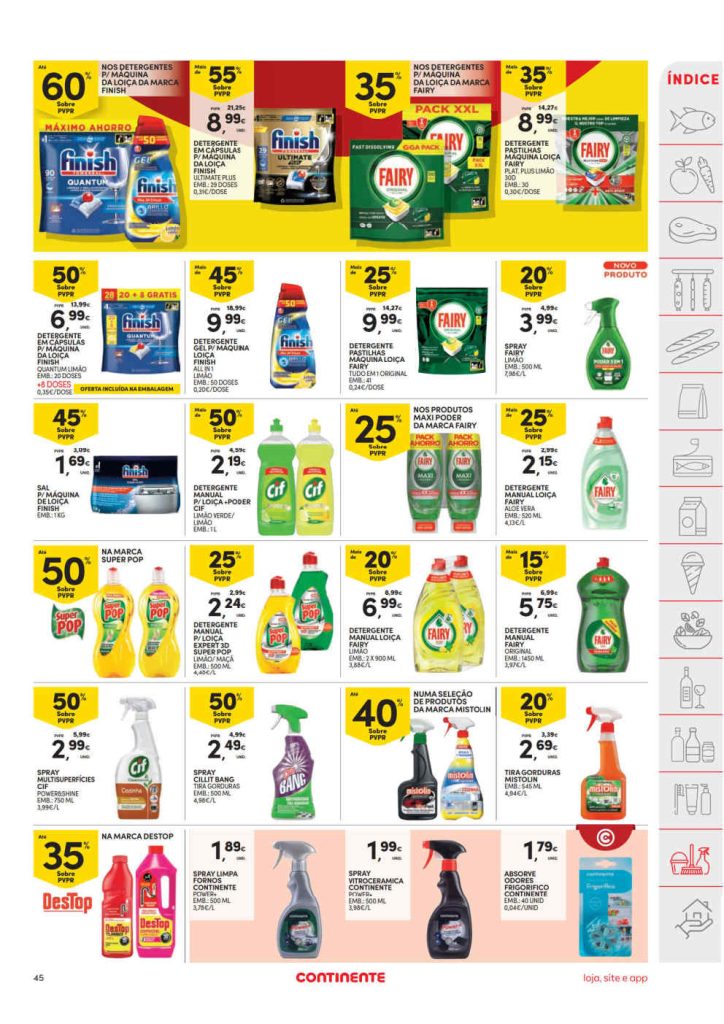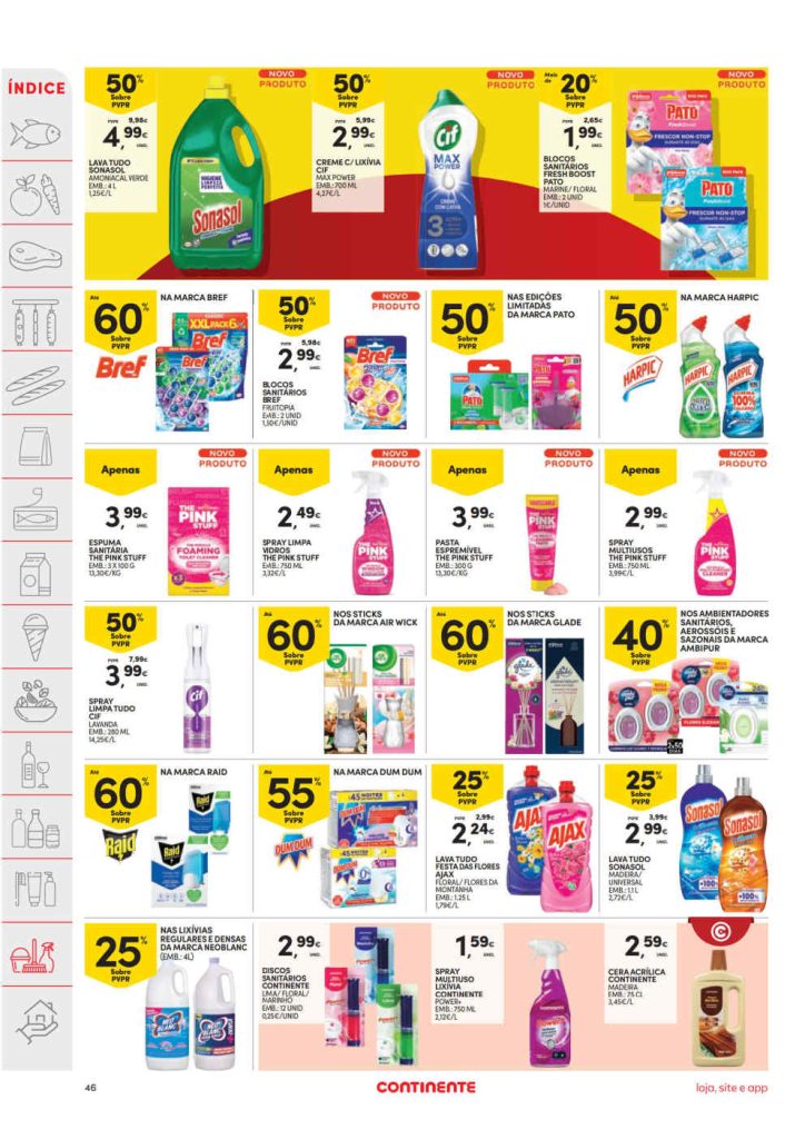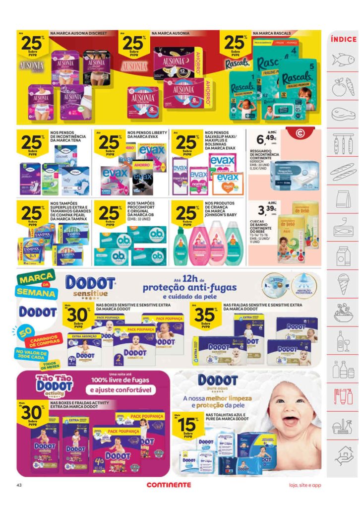 Preços mais baixos nas várias categorias. Promoções mercearia, higiene, limpeza, frescos, alimentação pets, bazar e bazarão. Atenção ao preço por dose e por kilo para poupar mais no cabaz alimentar. Boas acumulações com os novos cupões de desconto atribuídos na app ou cartão Continente. Consultem os Folhetos. A Antevisão Folheto!