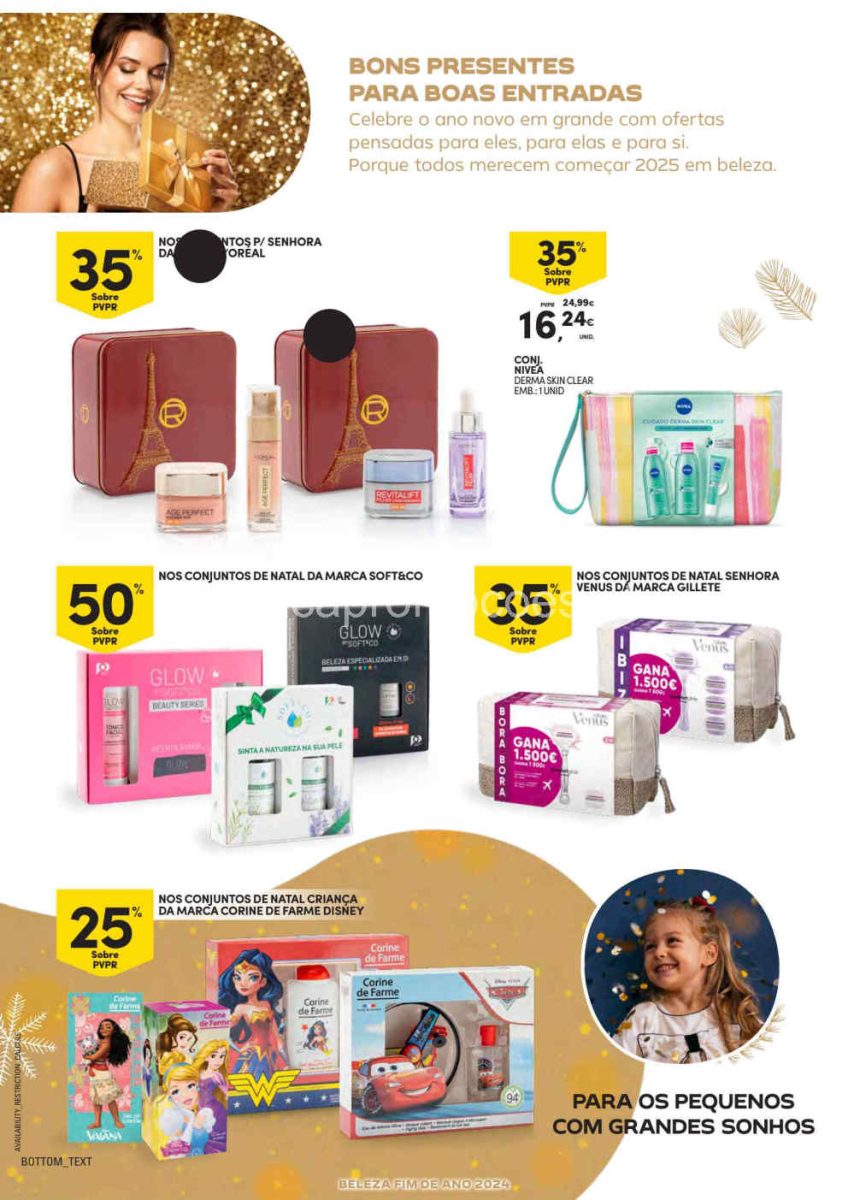 Todas as promoções e descontos diretos em para o Natal e Ano Novo. ☺️?Acumulem com os cupões de desconto, façam a vossa lista e Aproveitem as centenas de oportunidades de Natal! Até 50% desconto em conjuntos de Natal, conjunto KING GILLETTE a 55,99€/pack, conjunto NIVEA derma skin clear a 16,24€, creme de mãos e unhas MY LABEL a 0,99€ e muito mais para beleza, cuidados pessoais e presentes de Natal. ? Todo o Folheto abaixo!?