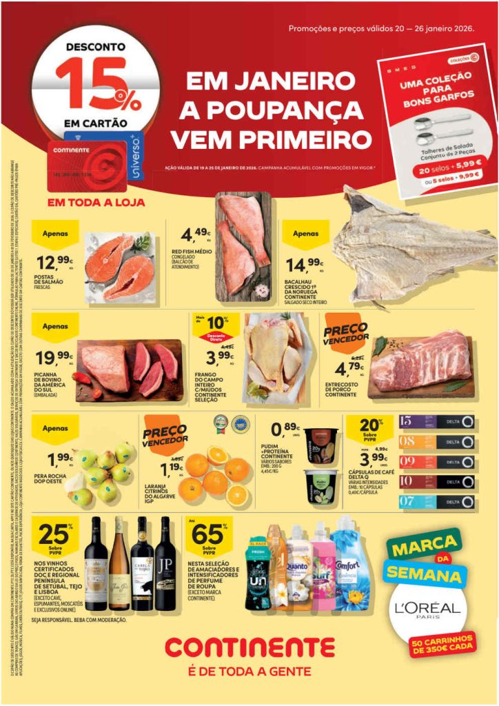 As ofertas incluem combinações atrativas de preço final e qualidade. Folheto Continente Bom Dia 20 a 26 de janeiro,
