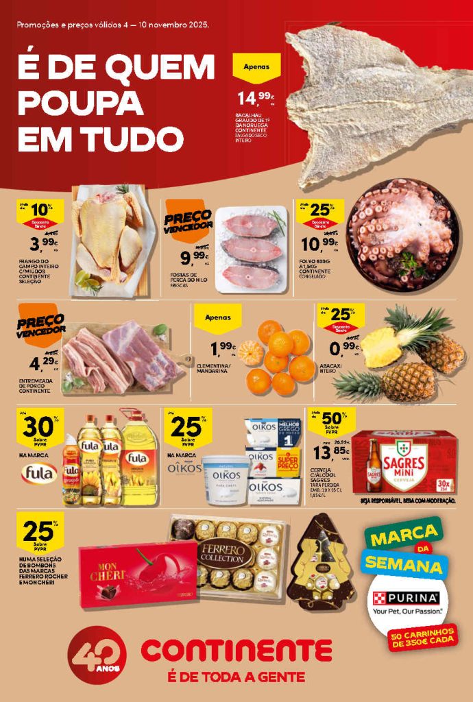 Está lançado mais um roteiro de descontos imperdíveis. Folheto Continente Bom Dia 4 a 10 de novembro,