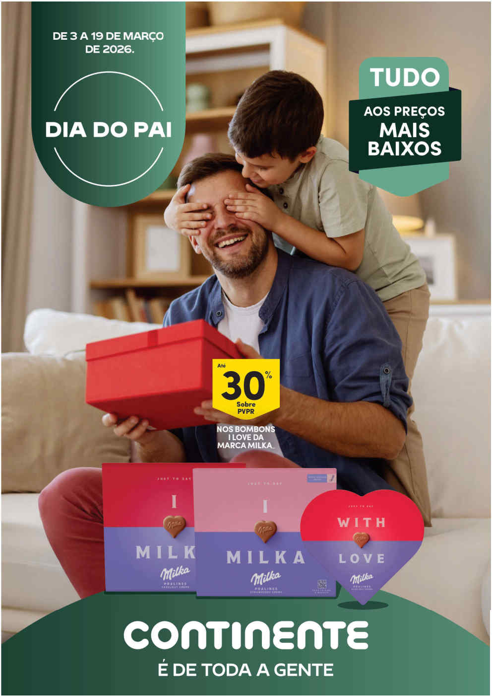 A antevisão em primeira mão das promoções Dia do Pai. Folheto Continente 3 a 9 de março, As promoções e preços baixos alimentar e bazar para mimar os Pais. Os descontos diretos em presentes, ferramentas, bem estar, doces e mais para oferecer a 19 de março. Adoro o dia já que até é feriado municipal … Continue a ler Folheto Continente Dia do Pai – Antevisão Promoções 3 a 19 de março