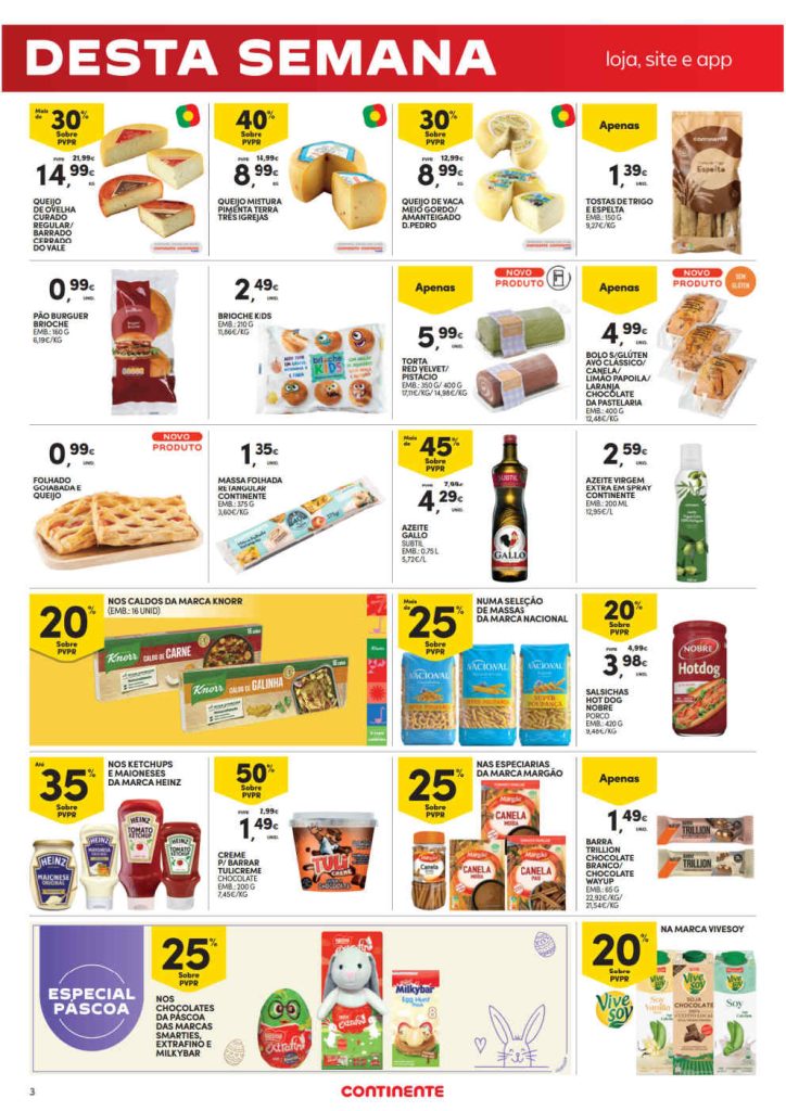 Este fim de semana pode ate aproveitar o especial Páscoa com 25% desconto nos chocolates assinalados. Existem vários produtos mais baratos que nas campanhas anteriores e inclui azeite até 70% desconto direto. Se necessitar de detergentes tenha sempre em atenção ao preço por dose. No meu caso até tenho cupão para detergentes da roupa! Sim, a marca Continente está com preços competitivos e nada como poupar! Consultem os Folhetos. A Antevisão Folheto!🛒