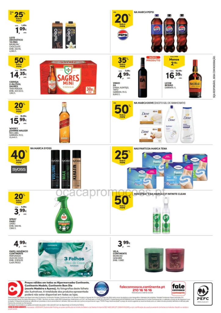 As promoções mantêm foco em produtos essenciais com preço revisto. Folheto Continente Fim de Semana 23 a 26 de janeiro,