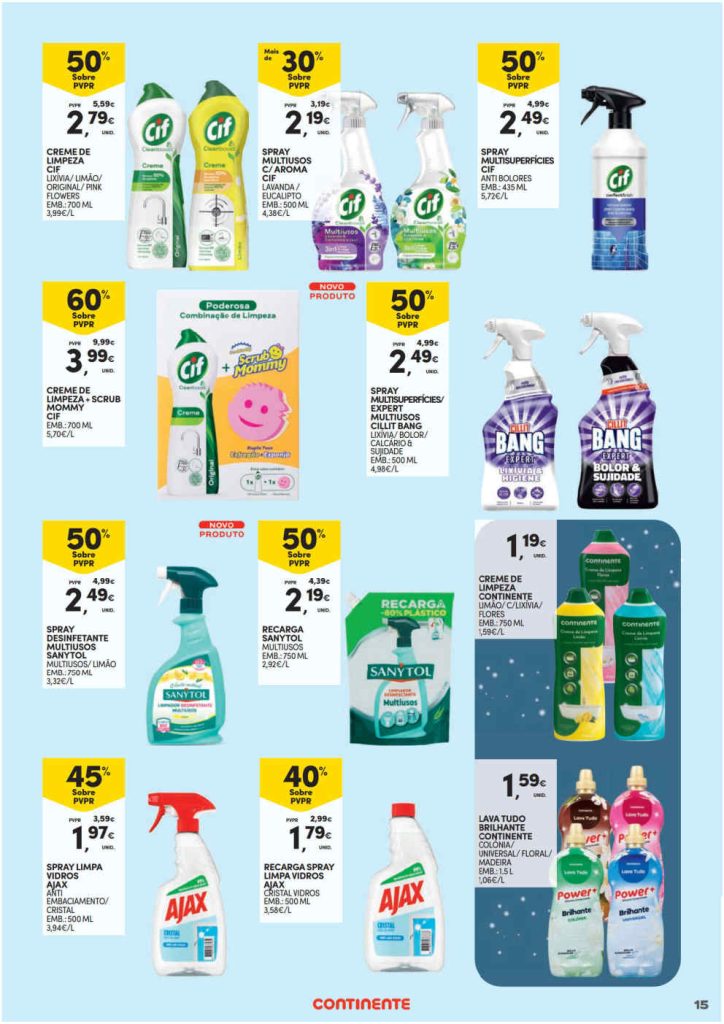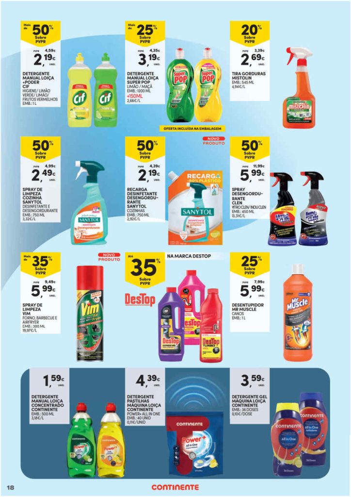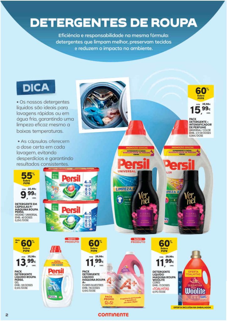 As promoções em limpeza e mais para as suas compras. Aproveite e tenha sempre em atenção o preço por dose para poupar. Acumule com a app ou Cartão Continente e use os cupões de desconto. Boa relação qualidade e preço para o seu carrinho de compras. Aproveite! Consultem os Folhetos. A Antevisão!🎯