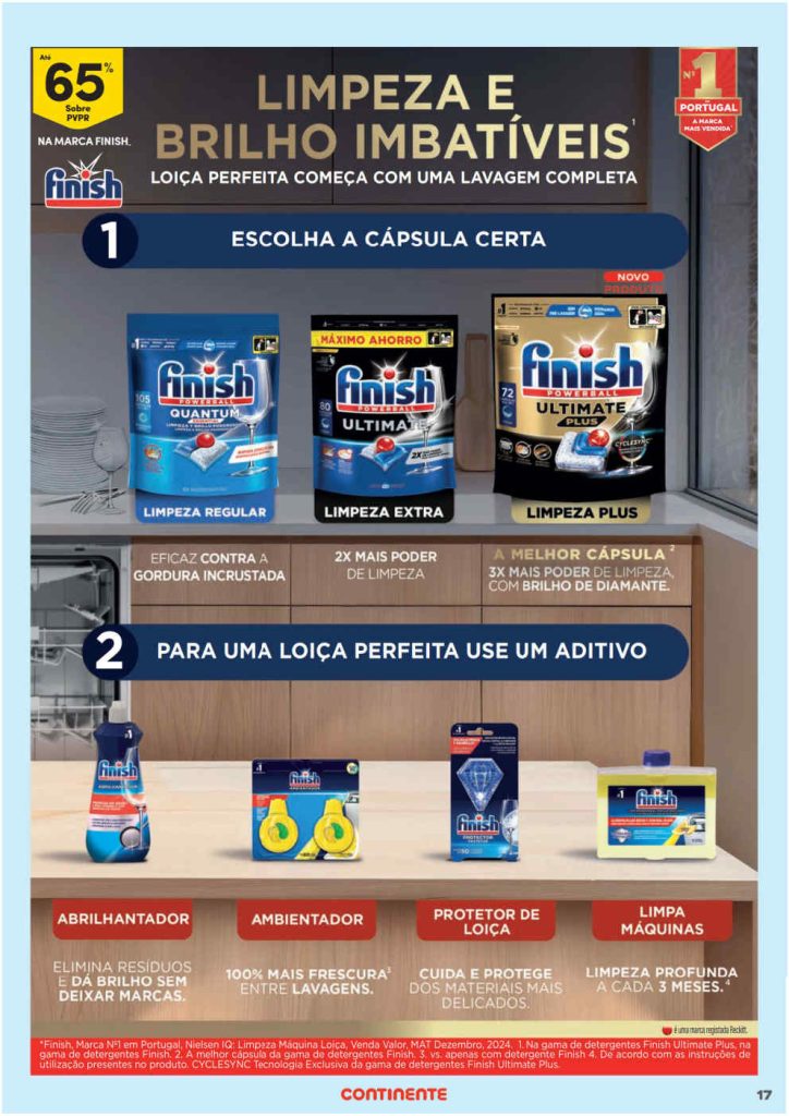 Destaco Detergente máquina loiça + Abrilhantador Finish Ultimate Plus a 16,99€,