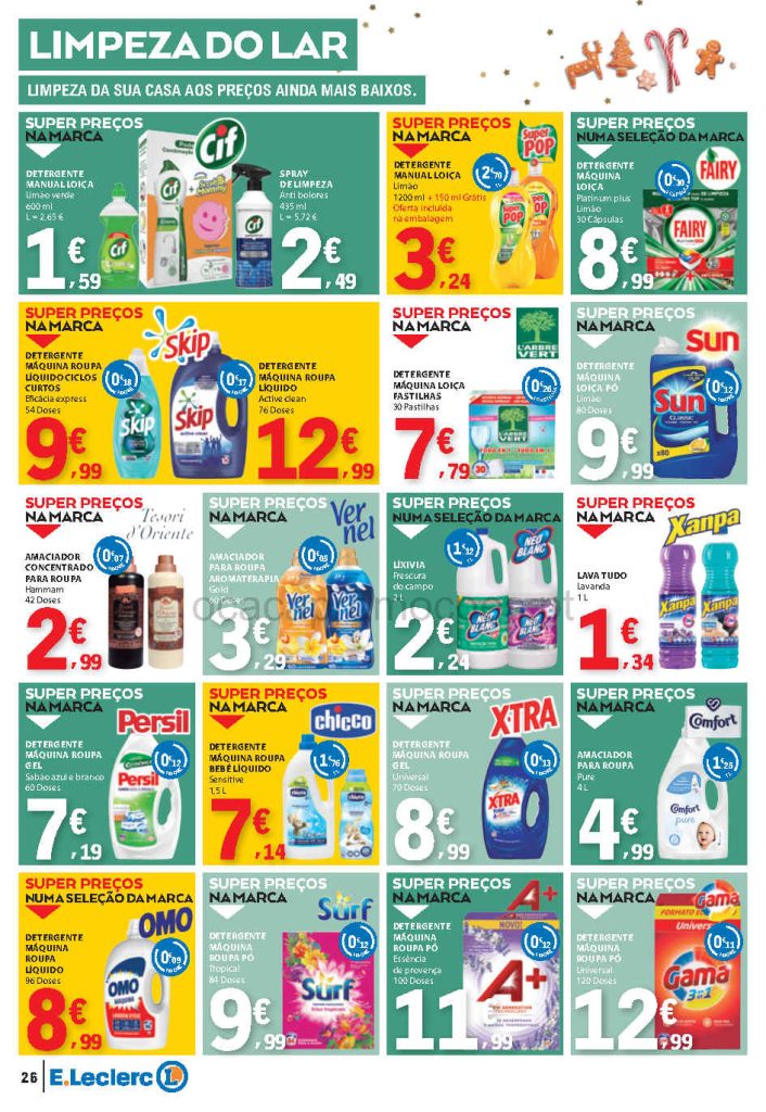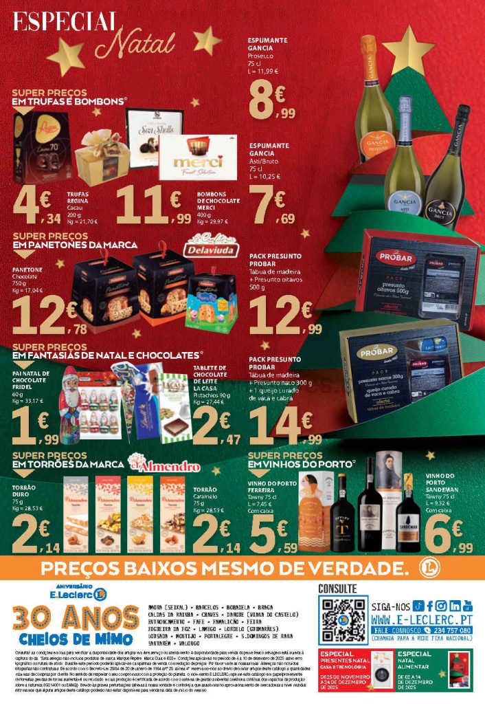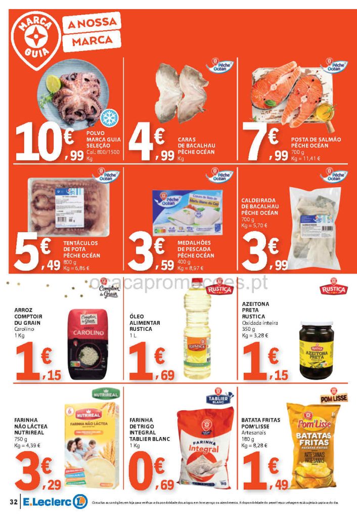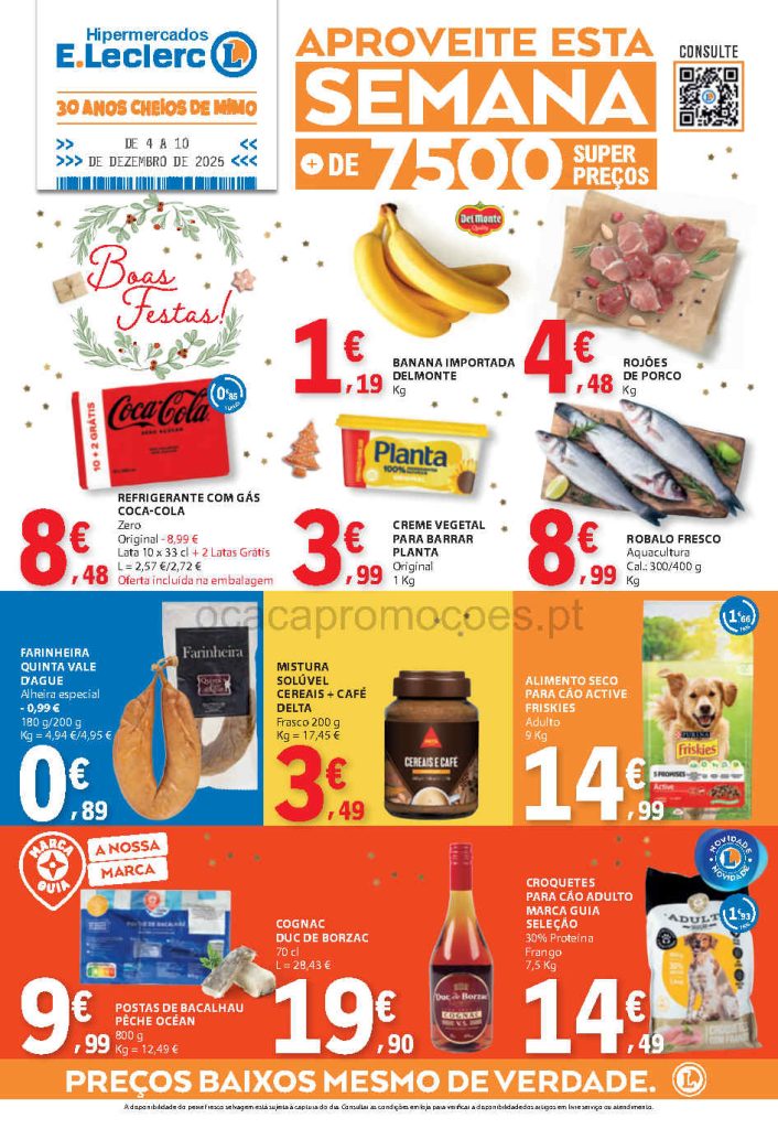 Esta edição mantém a tendência de promoções consistentes em produtos essenciais. Folheto E Leclerc,