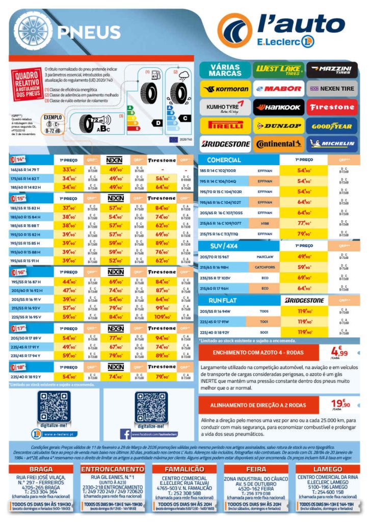 Muitos os serviços e artigos disponíveis nestas lojas. Baterias, kit de primeiros socorros, kit reparação furos auto, mala bagageira, tapetes, pneus multimarcas com novos descontos, suporte para smartphone e mais artigos auto. Comparem e façam a manutenção. Consultem os Folhetos. Todo o folheto abaixo!🎯