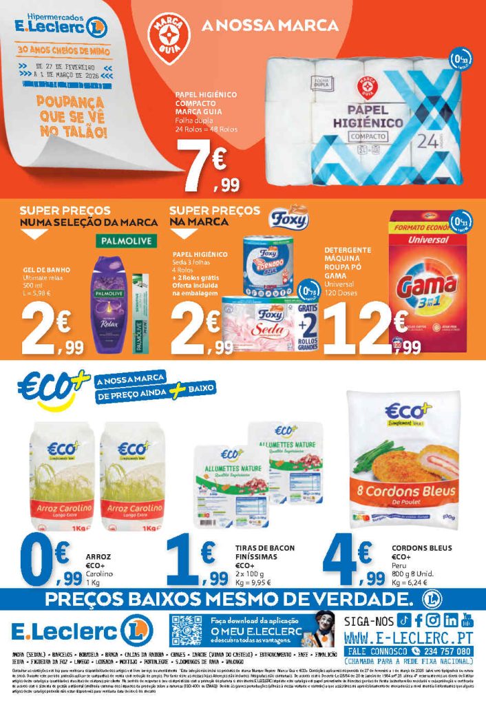 As novas promoções para a lista de compras. Folheto E Leclerc 27 fevereiro a 1 março,