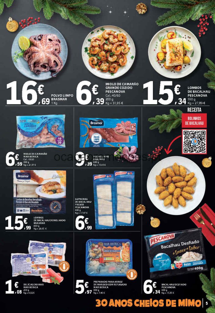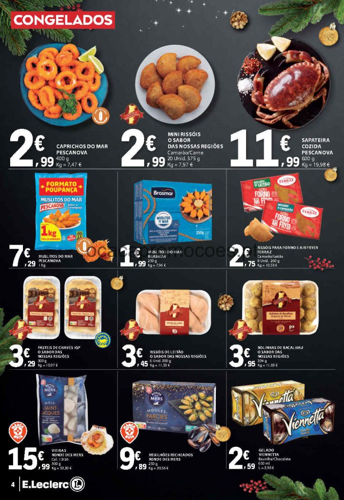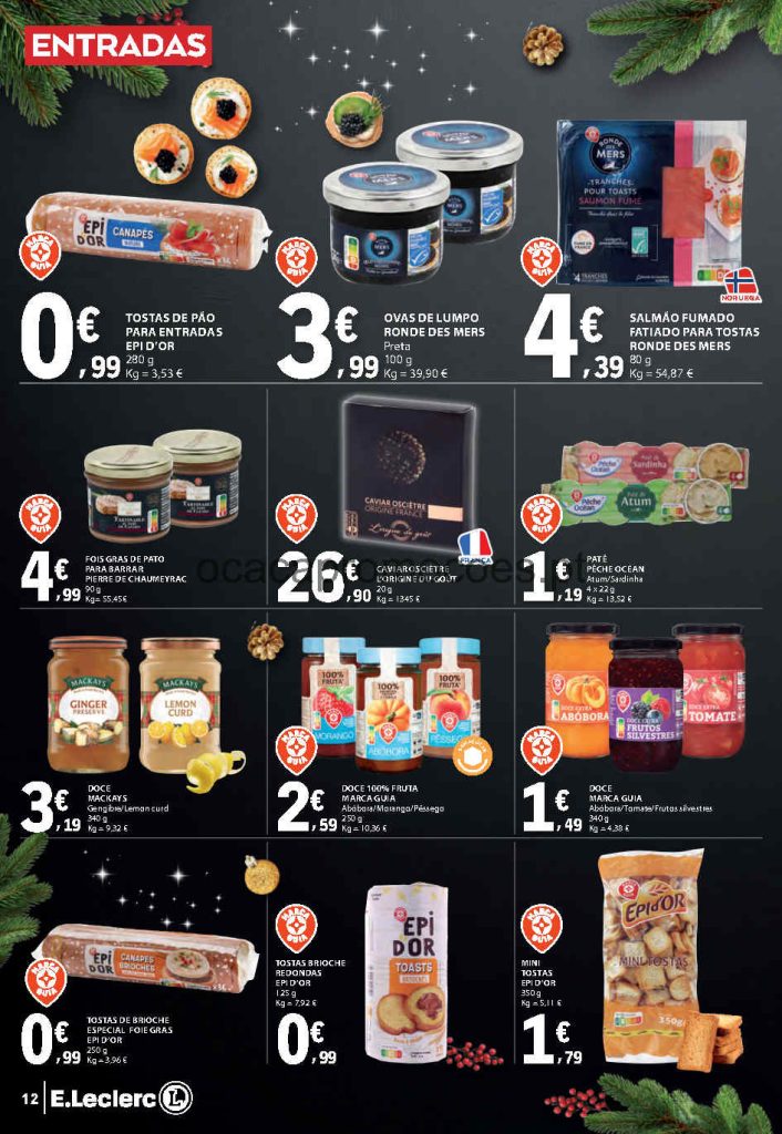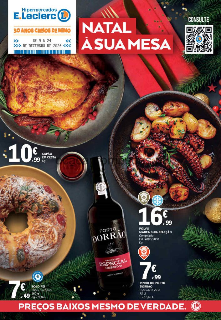 A campanha apresenta diversas propostas com preços revistos em baixa. Folheto E Leclerc Natal 9 a 24 de dezembro,