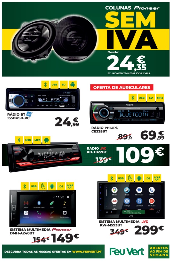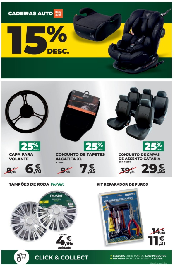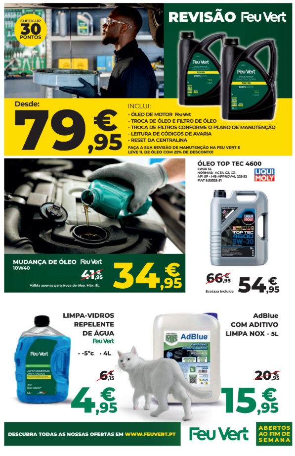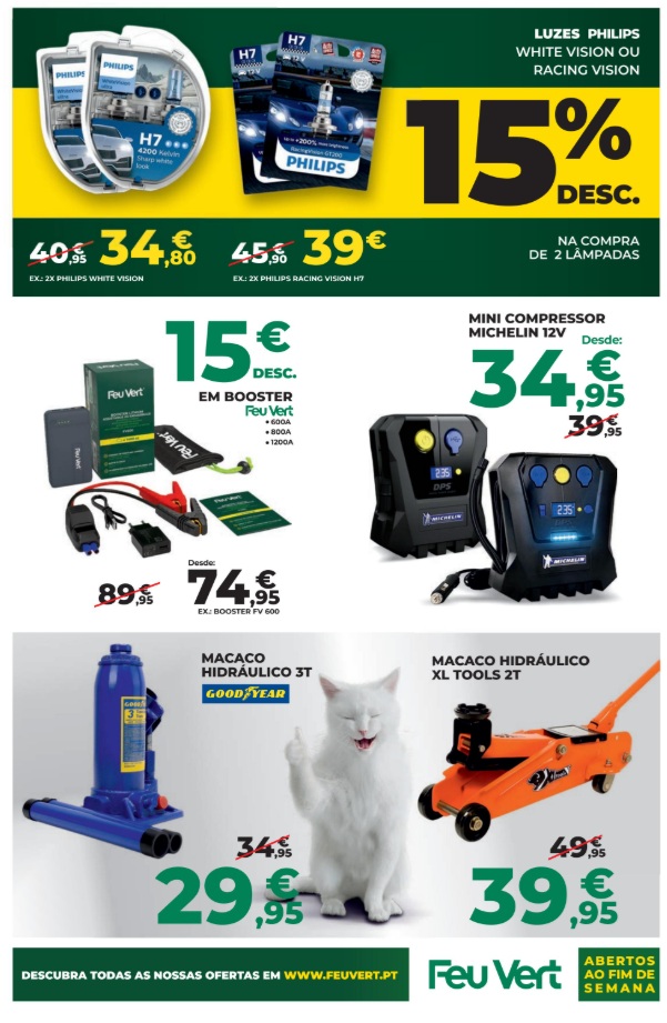 As descidas de preço estão presentes em todas as categorias principais. Folheto Feu Vert 9 a 21 de janeiro,