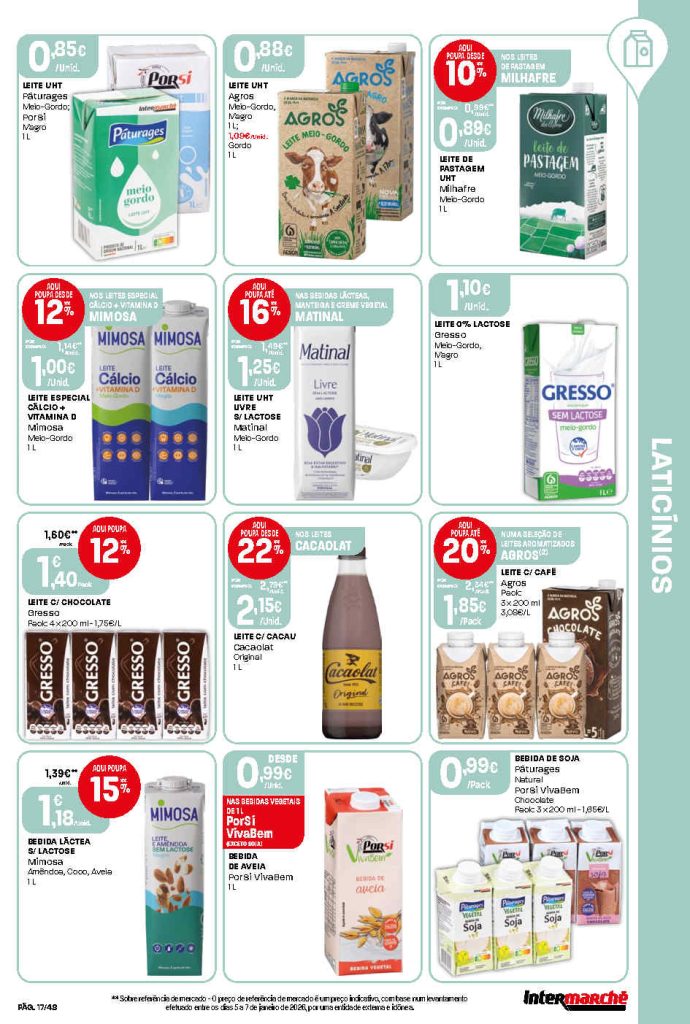 Destaco Leite magro ou meio gordo Gresso a 0,85€ cada,