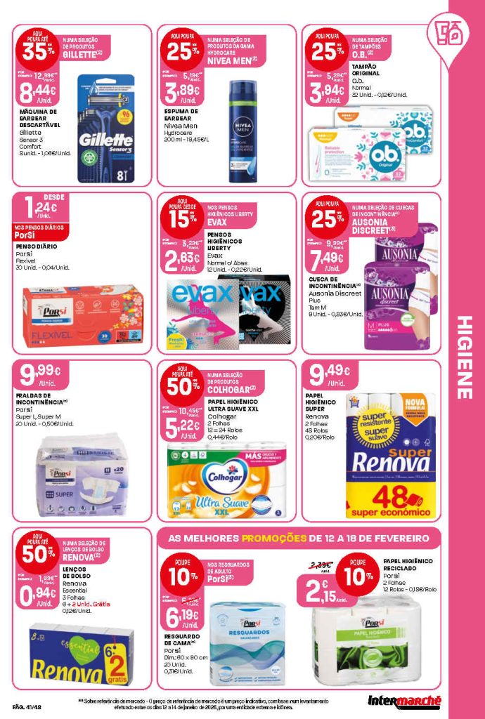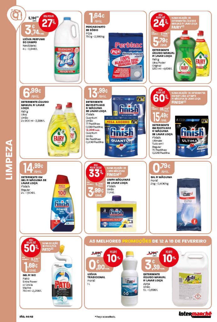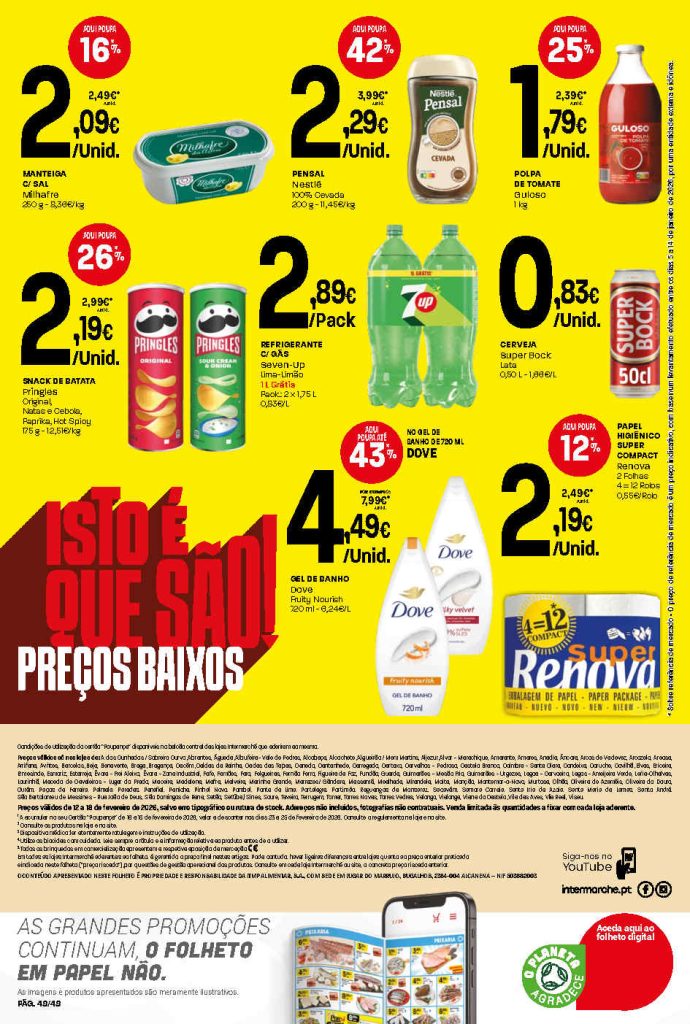 Este folheto traz reduções amplas em bens alimentares e produtos do lar. Folheto Intermarché 12 a 18 de fevereiro,