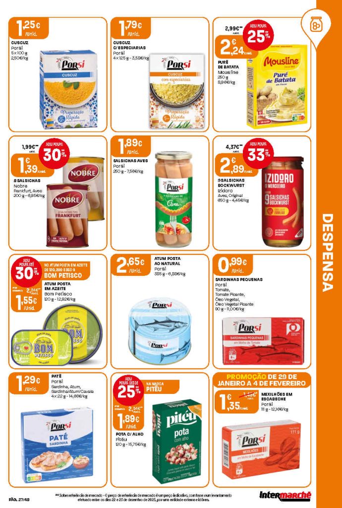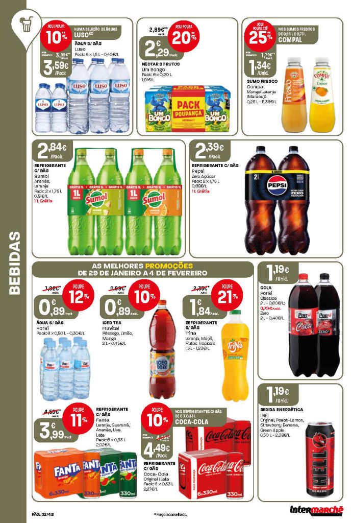 Este folheto traz reduções amplas em bens alimentares e produtos do lar. Folheto Intermarché 29 janeiro a 4 fevereiro,