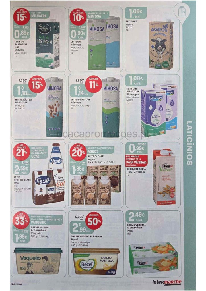 Em destaque Leite Agros magro ou meio gordo a 0,79€ unidade,