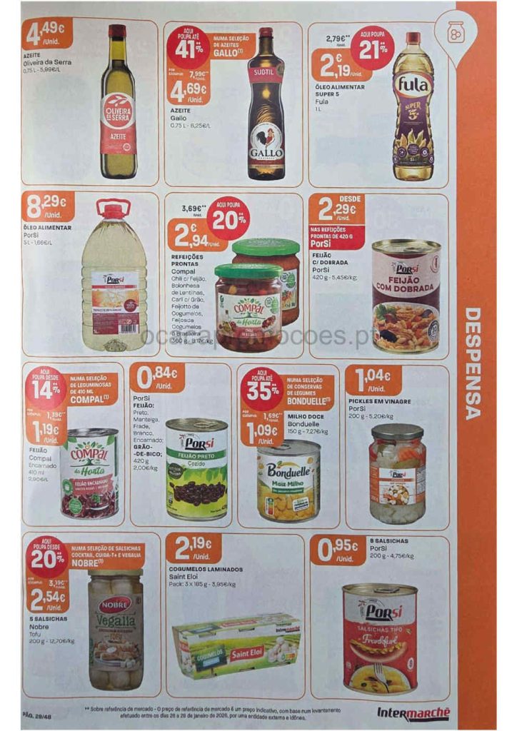Azeite Oliveira da Serra a 4,49€ embalagem e mais abaixo,