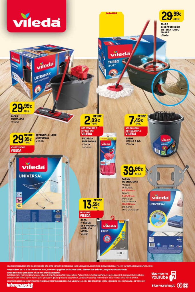 Tábua de engomar a 39,99€ unidade e mais Vileda.