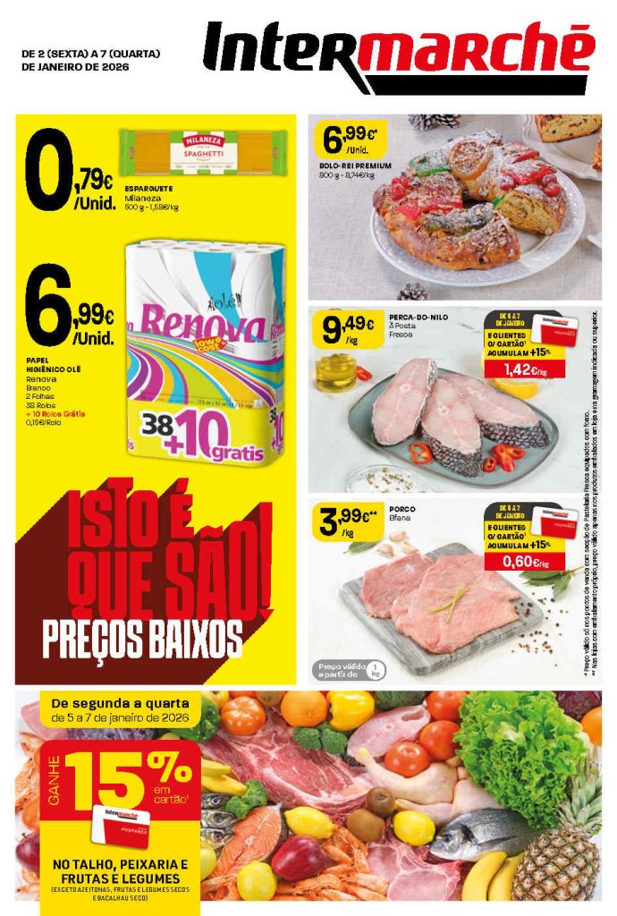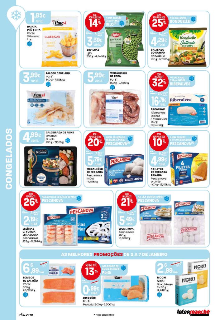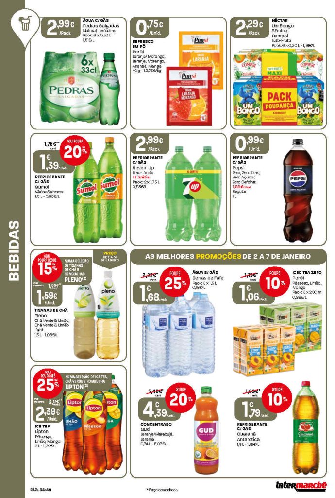 Este folheto traz reduções amplas em bens alimentares e produtos do lar. Folheto Intermarché 2 a 7 de janeiro,