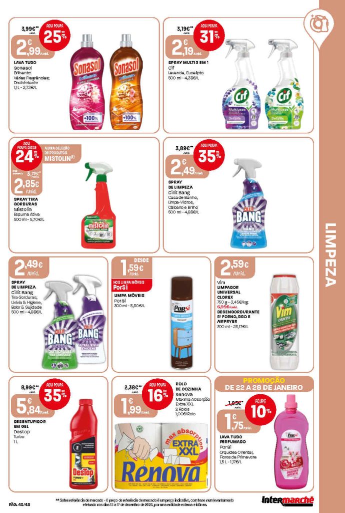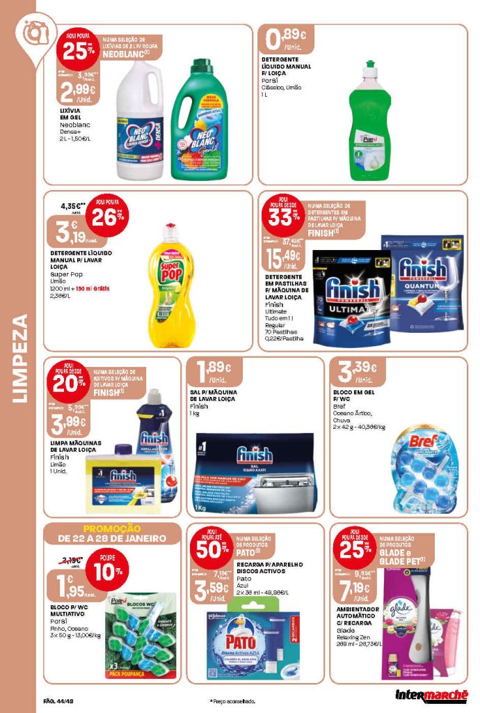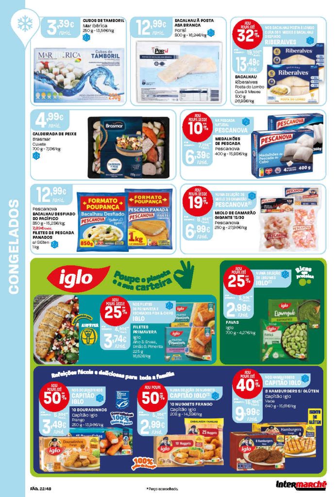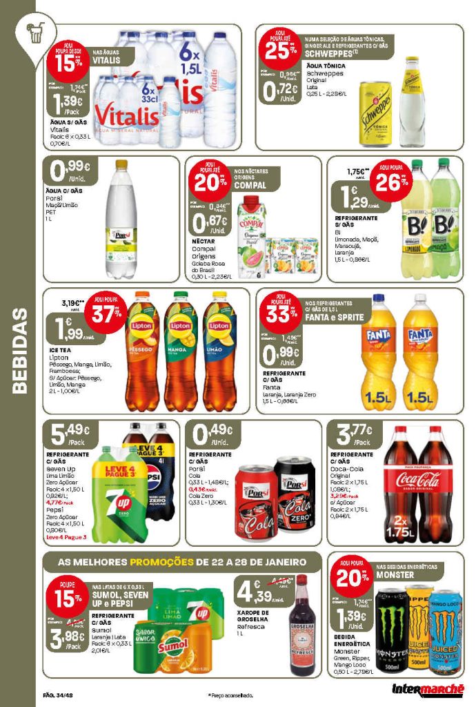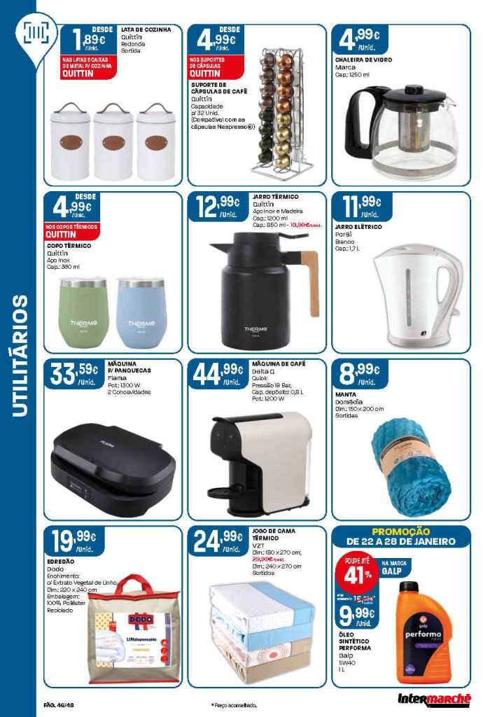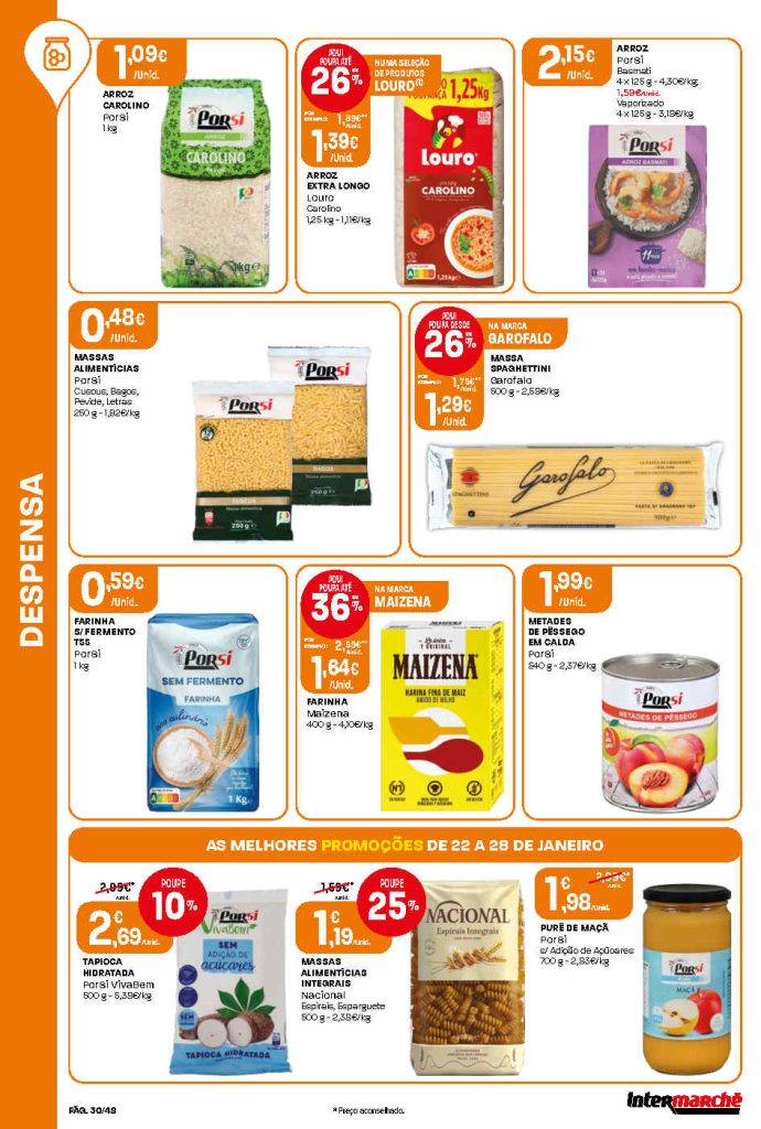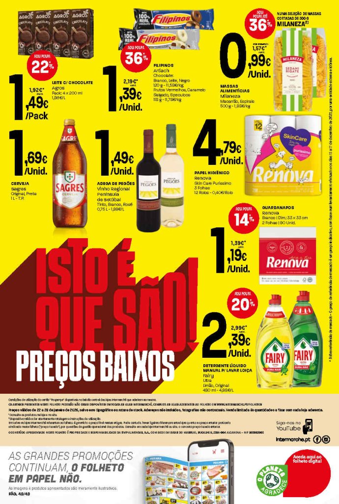 Este folheto traz reduções amplas em bens alimentares e produtos do lar. Folheto Intermarché 22 a 28 de janeiro,