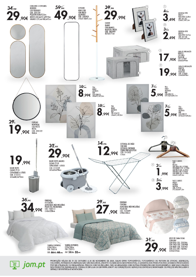 Todas as promoções de Outono em bazar. Quarto, sala, cozinha, casa de banho. Inclui eletrodomésticos, decoração com descontos diretos. Aspirador vertical BOSH a 109€, sofá de 3 lugares assinalado a 399€, estendal de chão a 12,99€, desumidificador WHIRPOOL a 209,90€, cama de casal FARO 249€, mesas de centro, plantas artificiais, mesas de cozinha, mesas de jantar, estantes e tapetes. Comparem e Aproveitem todo o bazar!??