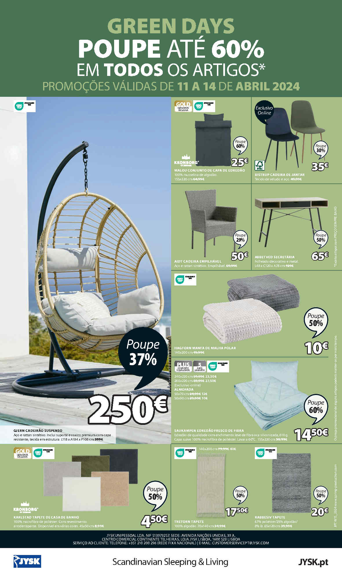 Folheto JYSK Green Days Promoções 11 abril a 14 abril.