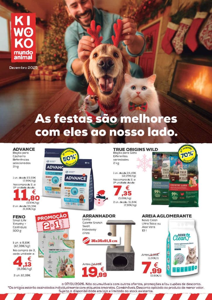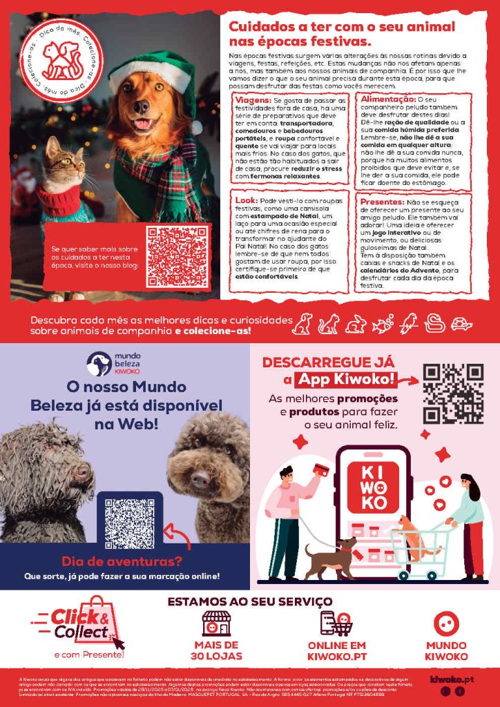 Mais variedade, mais desconto, mais para si. Folheto Kiwoko de 8 dezembro a 7 janeiro,