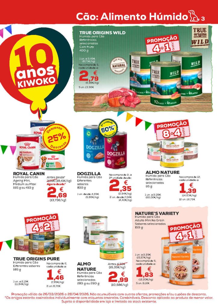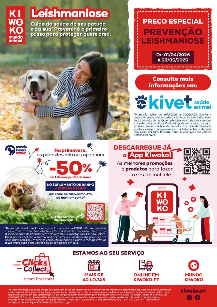 As promoções alimentar e bazar no Folheto Kiwoko até 28 de abril