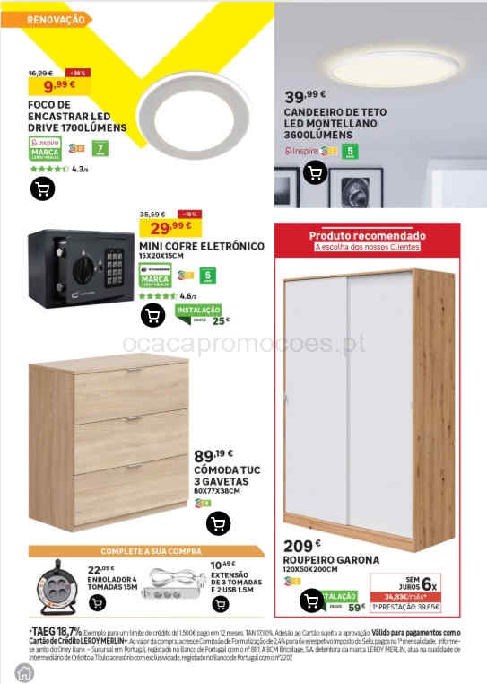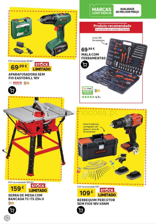Promoções e descontos até 50%. Jardim, casa de banho, organização, ferramentas, ar condicionado, aquecimento e mais categorias. O Caça Promoções está atualizado para que saiba sempre tudo em primeira mão. Aproveite o cartão Leroy Merlin para acumular pontos e vales de desconto. Consultem os Folhetos. Todo o Folheto Abaixo!🎯
