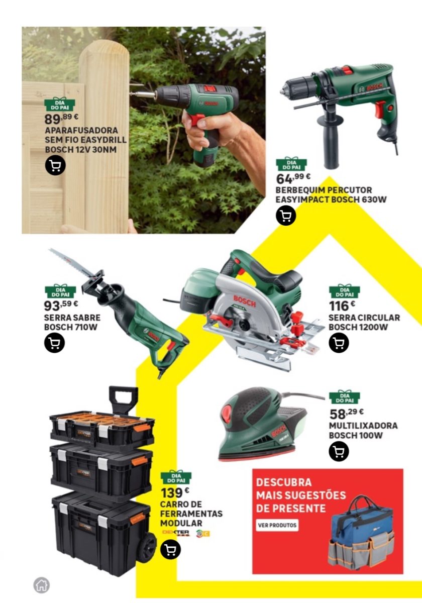 Antevisão exclusiva! Todas as promoções até 30% em bazar renovação, cozinha, casa de banho, jardim e mais. Todos os destaques desde bloco de porta LYON a 134€/unidade, pack 2 armários de pvc a 69,99€/conjunto, multilixadora BOSH a 58,29€/cada, cabine de duche transparente EASY a 329€, escada tripla 7 degraus 4M a 89,00€/cada, conjunto relax ONTARIO a 589€/ conjunto e muito mais. Façam a vossa lista e aproveitem. Comparem e aproveitem!??