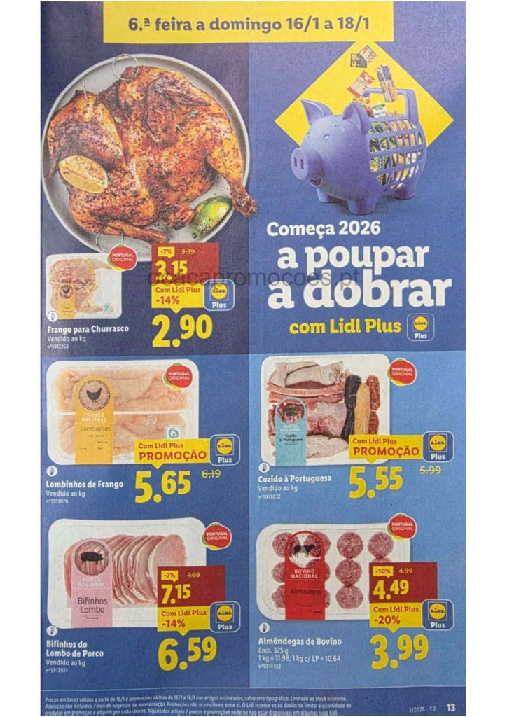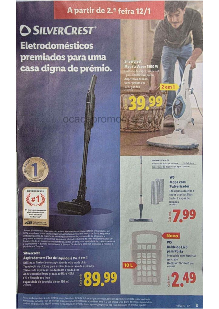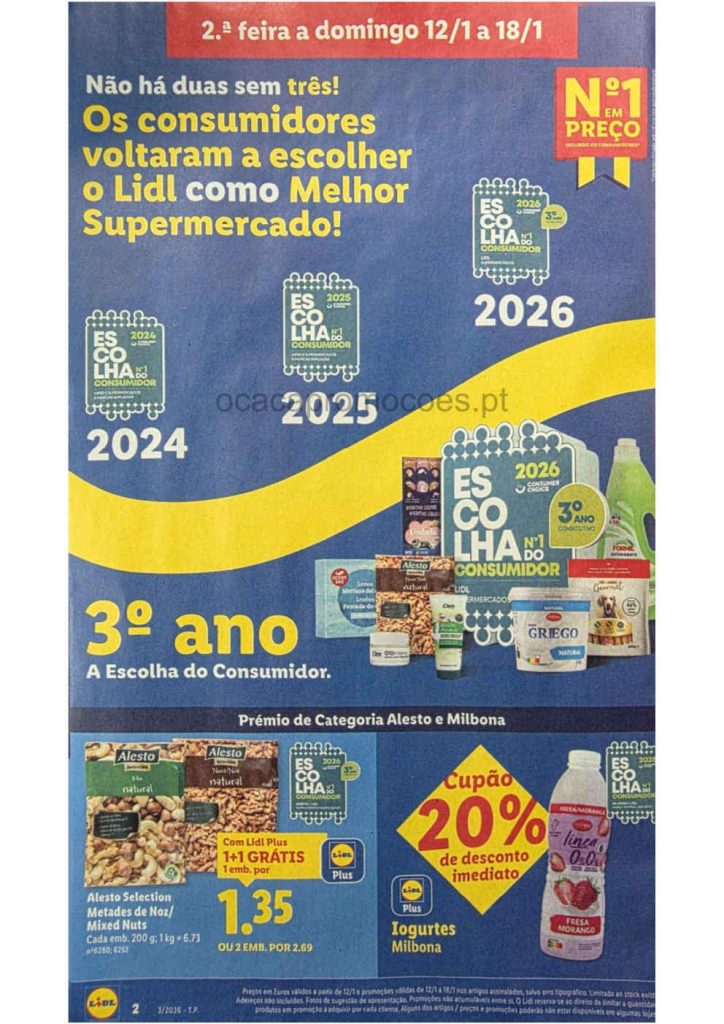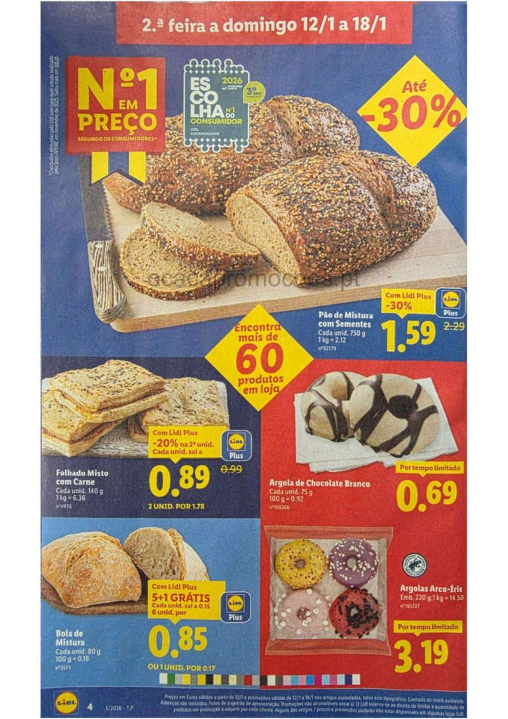Este folheto traz reduções amplas em bens alimentares e produtos do lar. Folheto Lidl 12 a 18 de janeiro,