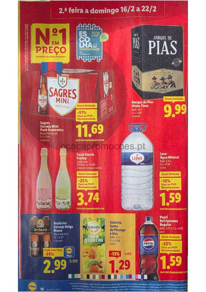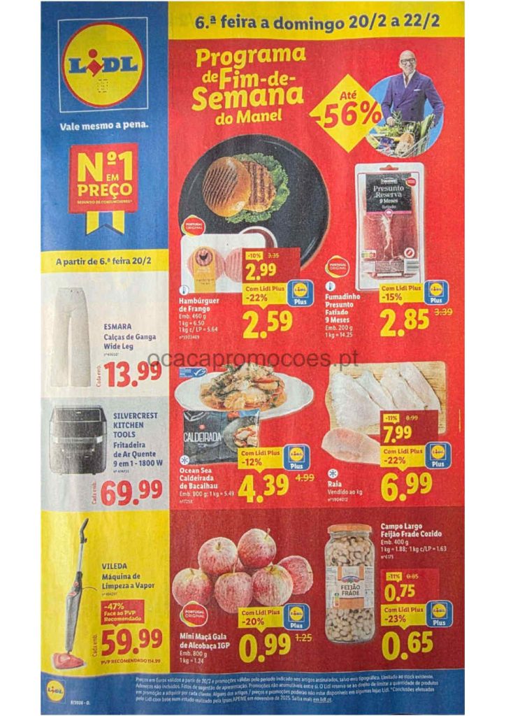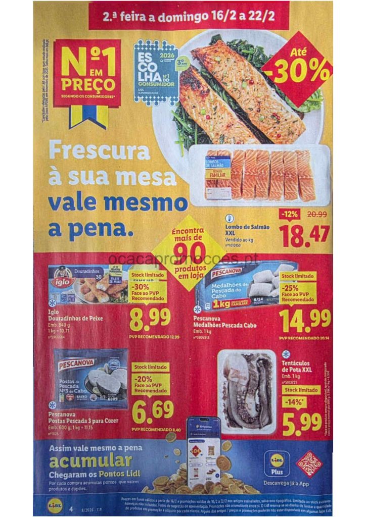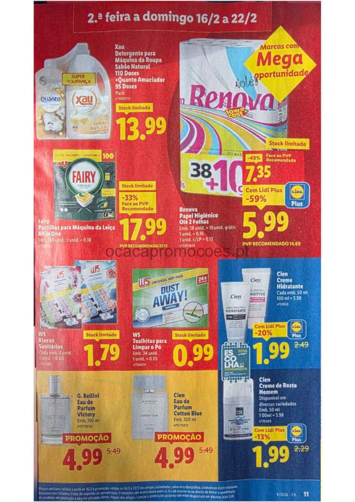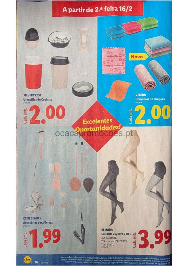 Este folheto traz reduções amplas em bens alimentares e produtos do lar. Folheto Lidl 16 a 26 de fevereiro