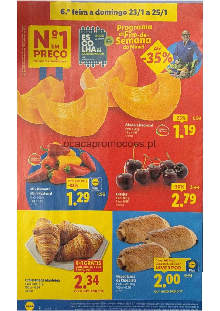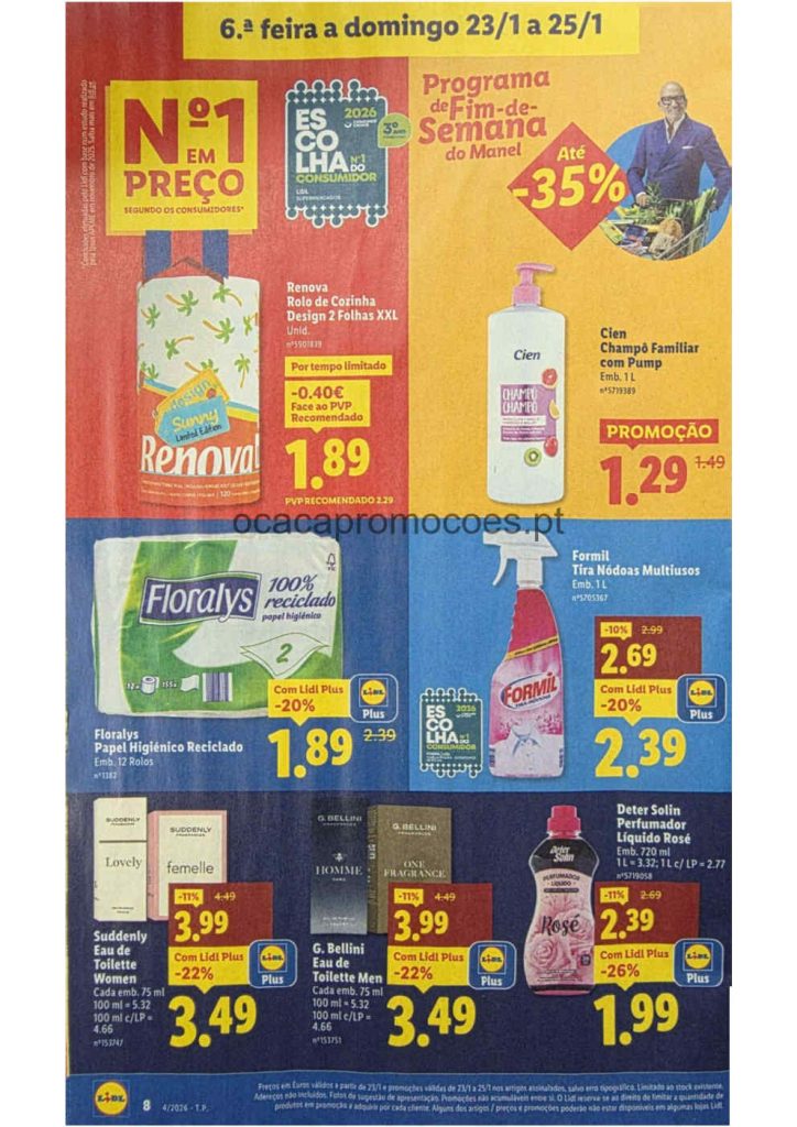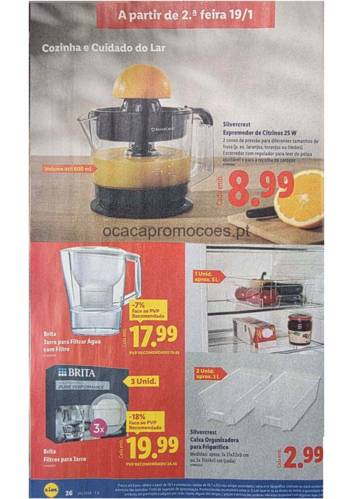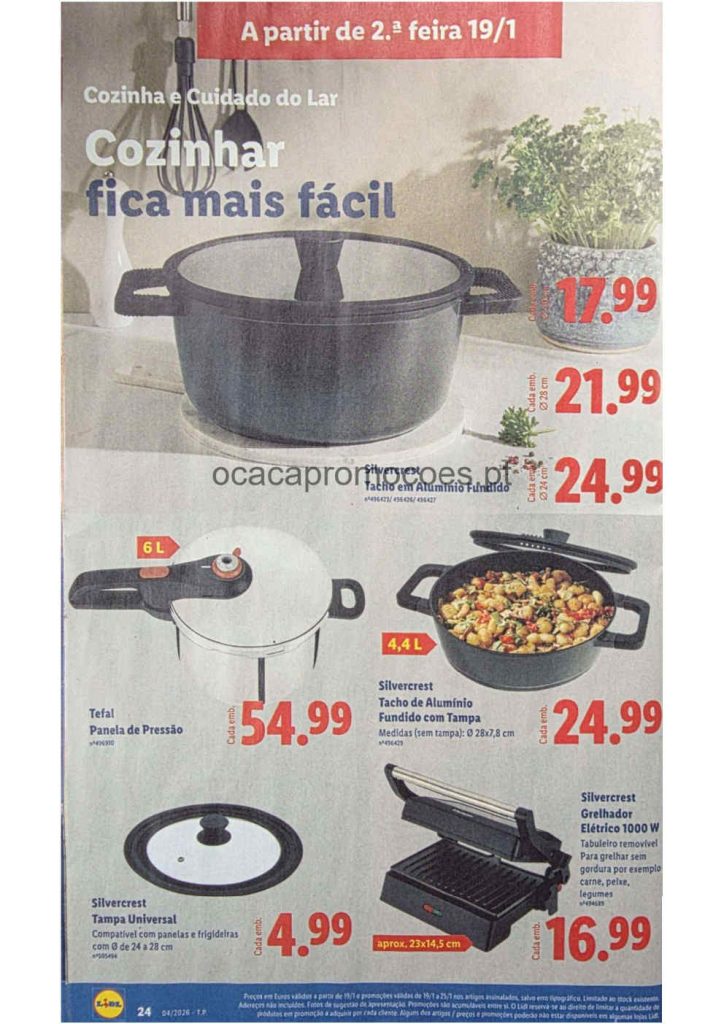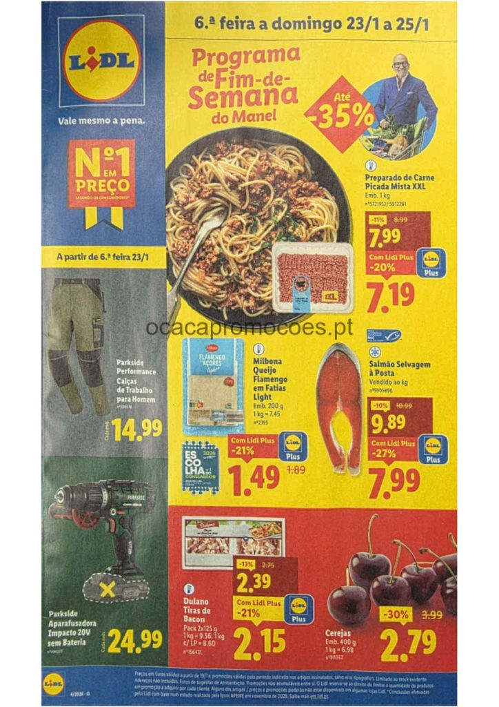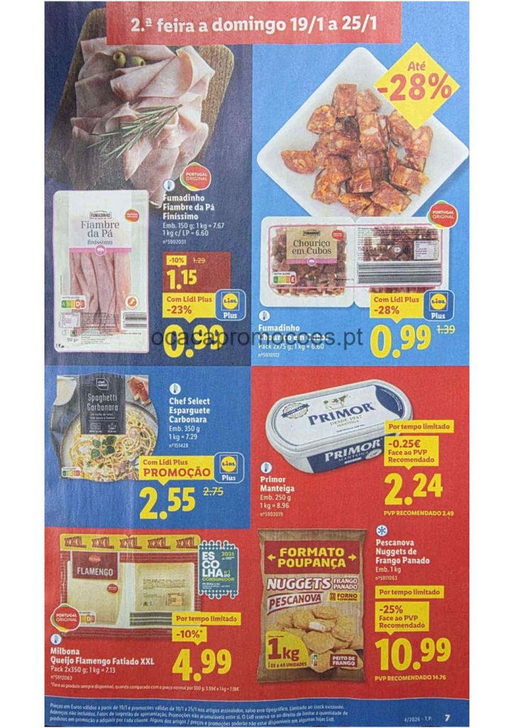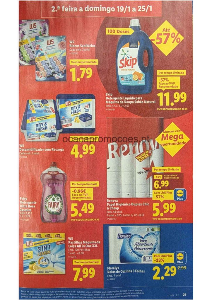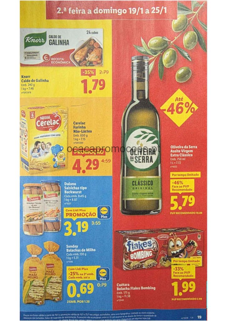 Este folheto traz reduções amplas em bens alimentares e produtos do lar. Folheto Lidl 19 a 25 de janeiro,