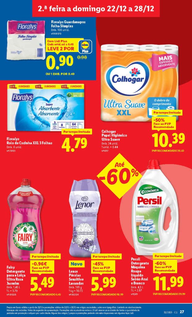 Esta semana chegam várias oportunidades para poupar em produtos essenciais. Folheto Lidl 22 a 28 de dezembro,