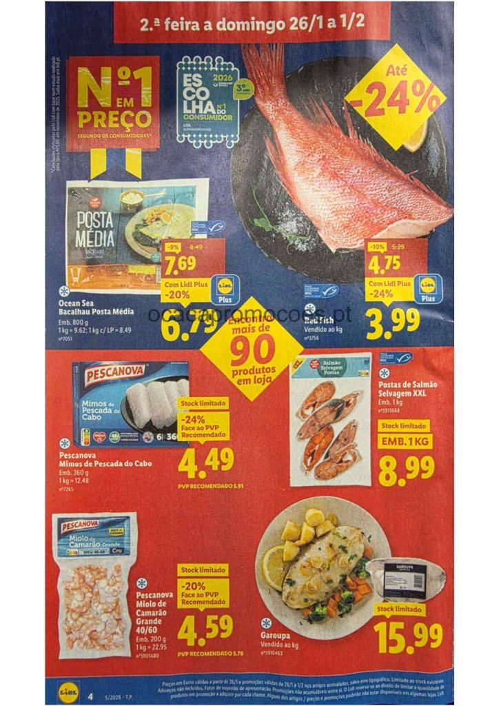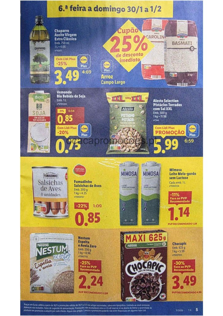 Este folheto traz reduções amplas em bens alimentares e produtos do lar. Folheto Lidl 26 janeiro a 1 fevereiro,
