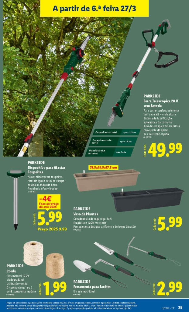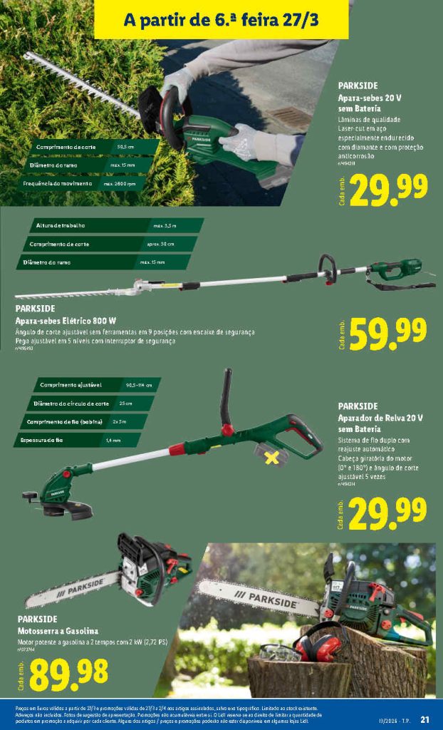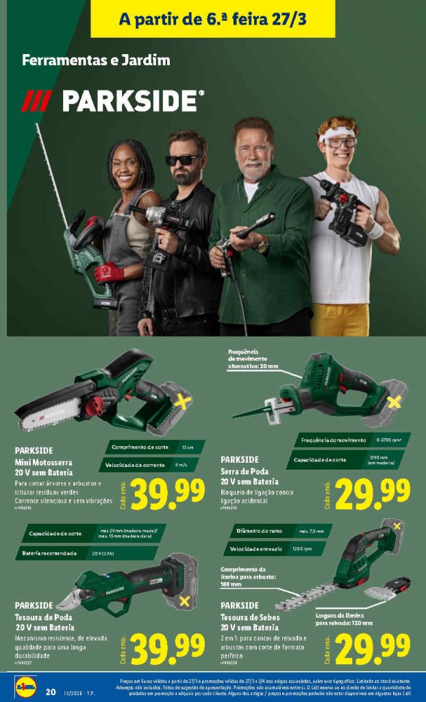Muitas oportunidades a aproveitar desde moto serra de poda Parkside Performance sem bateria a 79,99€,