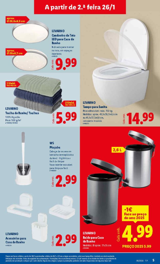 O conjunto de promoções traz boas oportunidades para preparar as compras da semana. Folheto Lidl Bazar 26 janeiro a 5 fevereiro,
