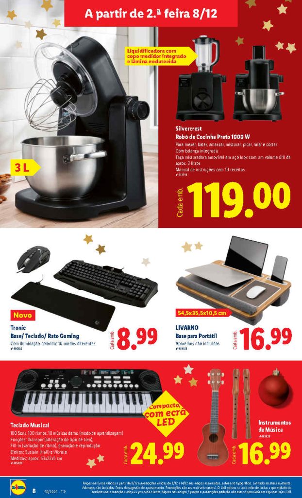 As descidas estão espalhadas por grande parte das categorias principais. Folheto Lidl Bazar 8 a 18 de dezembro,