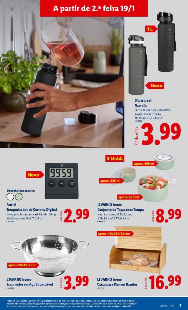 O conjunto de promoções traz boas oportunidades para preparar as compras da semana. Folheto Lidl Bazar 19 a 29 de janeiro,