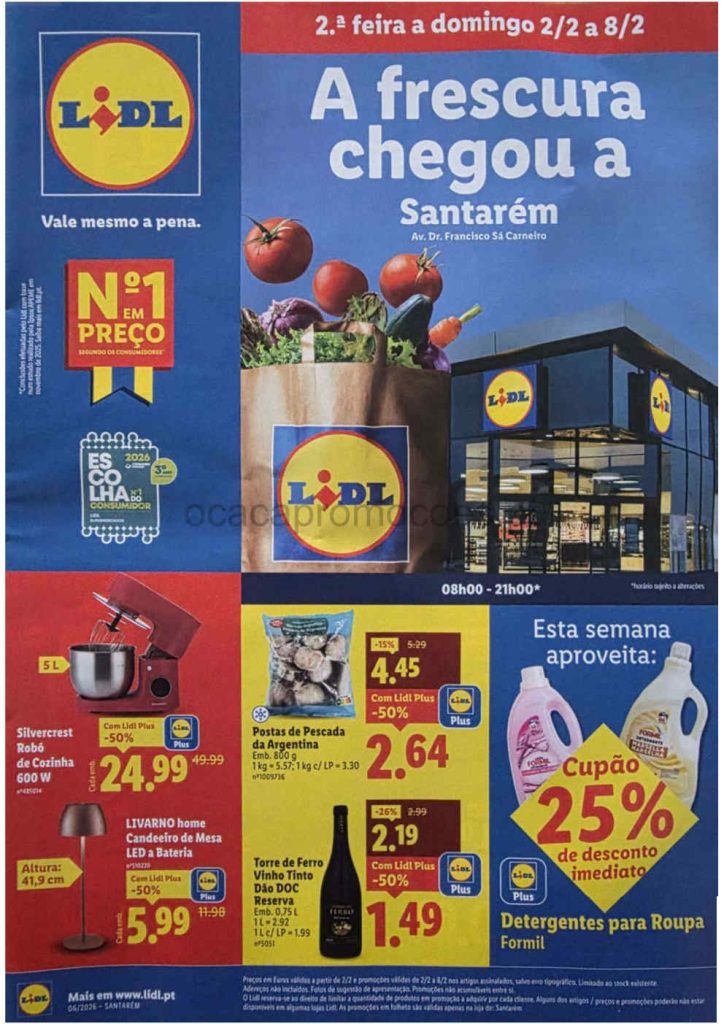 Nesta antevisão Lidl a partir de dia 2 só na loja assinalada em Santarém. Bazar assinalado com 50% desconto usando a app Lidl Plus. Aproveite os vários cupões de desconto exclusivos de abertura. Faça a lista, aproveite se estiver por perto e compare as marcas exclusivas Lidl. O site O Caça Promoções é atualizado a toda a hora.
