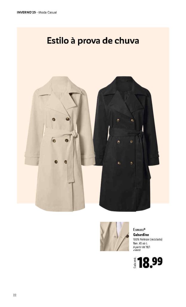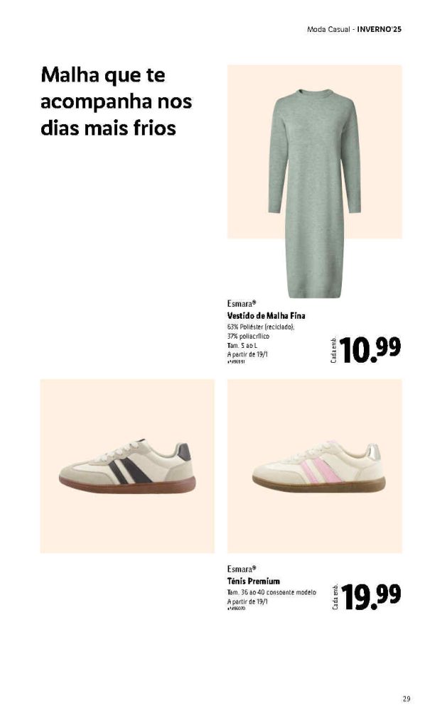 A seleção traz produtos bastante procurados a valores mais acessíveis. Folheto Lidl Esmara a partir 19 de janeiro,