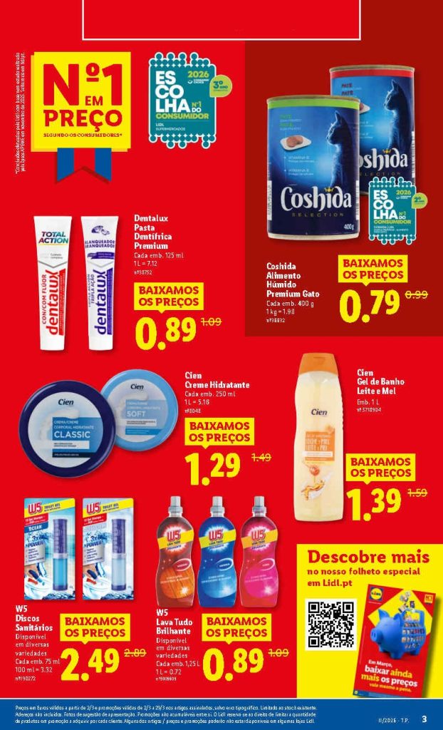 Já a partir de segunda feira sejam detergentes, cuidados para cabelos, higiene oral e mais para a lista de compras. Marcas desde Floralys, Cien, Dentalux, W5 e mais com preços mais baratos em relação à semana anterior. Use sempre a app Lidl Plus para otimizar a poupança no orçamento. Compare. 🛒Consultem os FolhetosA Antevisão!🎯