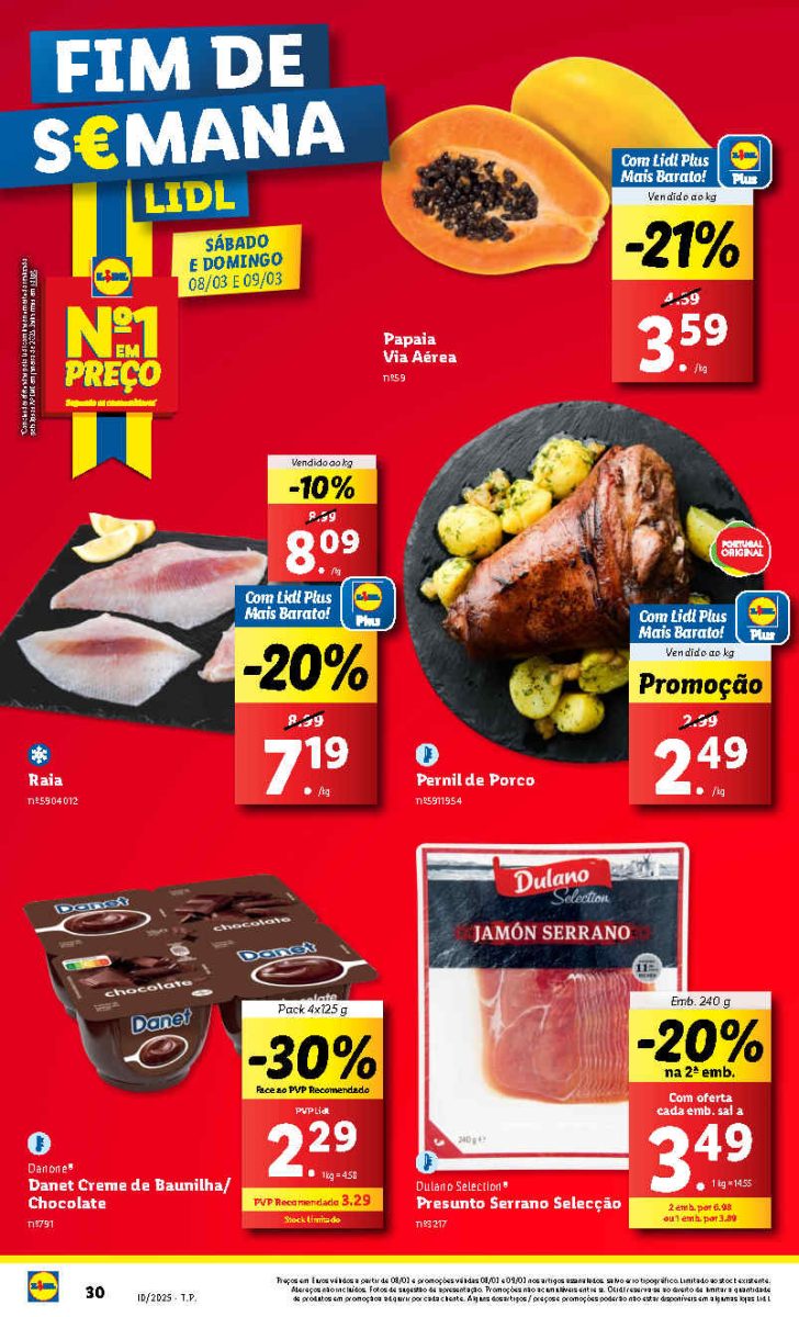 Sempre em primeira mão as promoções e descontos exclusivas do folheto LIDL com descontos em produtos alimentar, bazar, atenção ao preço por dose nos detergentes e muito bazar. Começa a nova oferta VITALIDL, papaia via aérea a 3,59€/kg, fiambre perna extra finíssimo FUMADINHO a 1,19€/embalagem, preparado de carne picada misto a 3,59€/embalagem e muito mais ofertas. Boas Poupanças! Todo o folheto abaixo.??