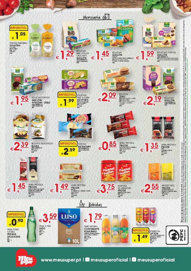 Novos descontos e promoções a acumular com cupões de desconto em frutas, legumes, limpeza, mercearia e mais para o seu dia a dia. Esteja atento á descrição e preço dos artigos abaixo. Inclui grandes marcas. Comparação e análise folheto Meu Super no O Caça Promoções. Consultem os Folhetos. A Antevisão!🛒
