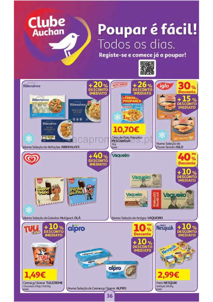 A minha dica é acumule com cartão Clube Auchan as oportunidades para otimizar o seu orçamento familiar. O Caça Promoções tem todas as antevisões em primeira mão e está permanentemente atualizado com as promoções, descontos e folhetos. Aproveite a provução nacional. Consultem os Folhetos. A Antevisão Folheto!