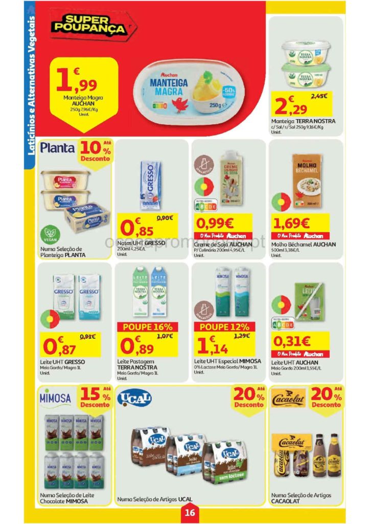 Leite magro ou meio gordo Gresso a 0,87€ cada e mais,