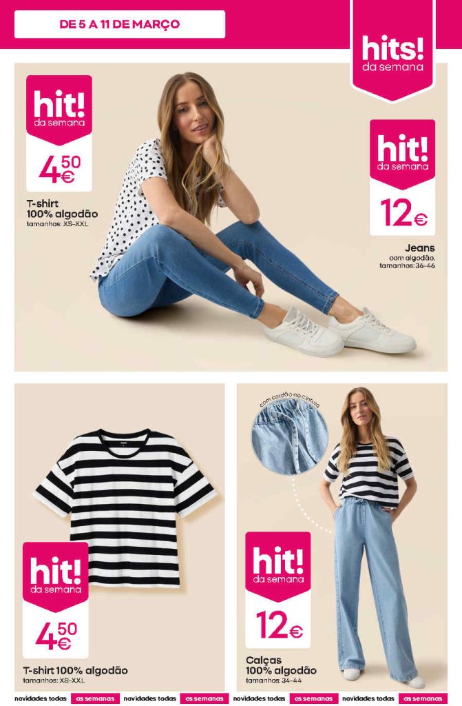 As promoções que incluem artigos a preços baixo. Moda para senhora, menino e menina. Se adora os seus pets e quer mimá-los, se quer decorar a casa ou mesmo para oferecer bazar, aproveite a seleção de artigos em folheto desde 1,50€. Tudo para poupar com estilo. Marque já na sua agenda. Consultem os Folhetos. A Antevisão!🛒