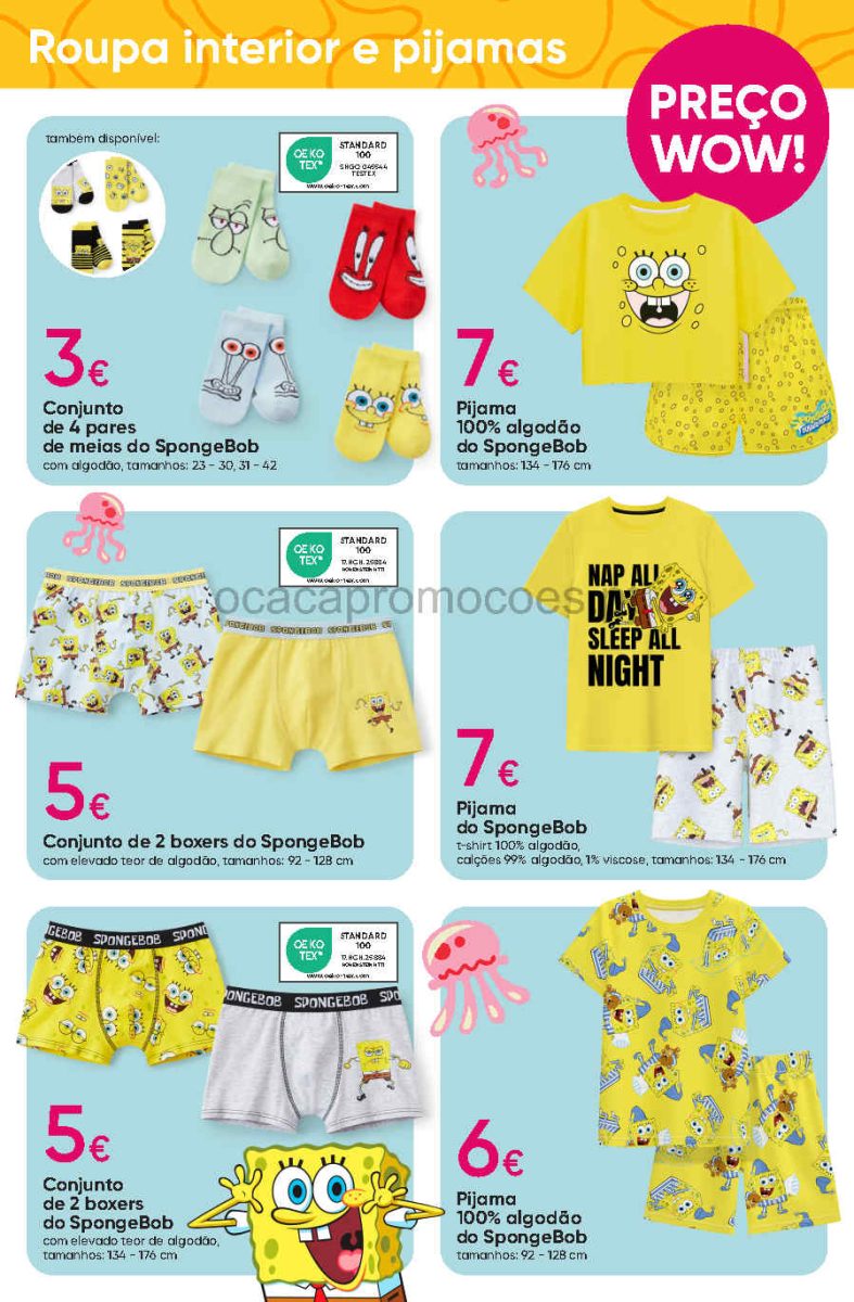 Mais uma antevisão exclusiva. Todas as promoções e descontos bazar em moda, casa, decoração, ar livre, utilitários, brinquedos, criatividade e mais. Calções SPONGEBOB desde 3,00€/cada, peluche SPONGEBOB a 6,00€/cada, pintainho de peluche a 6,00€/cada, conjunto de carro e acessórios a 7,00€/embalagem, vaso decorativo a 2,50€/cada, conjunto 3 ferramentas de jardinagem a 1,80€, top a 4,50€/unidade e muito mais novidades bazar. Aproveitem. Todo o folheto abaixo!